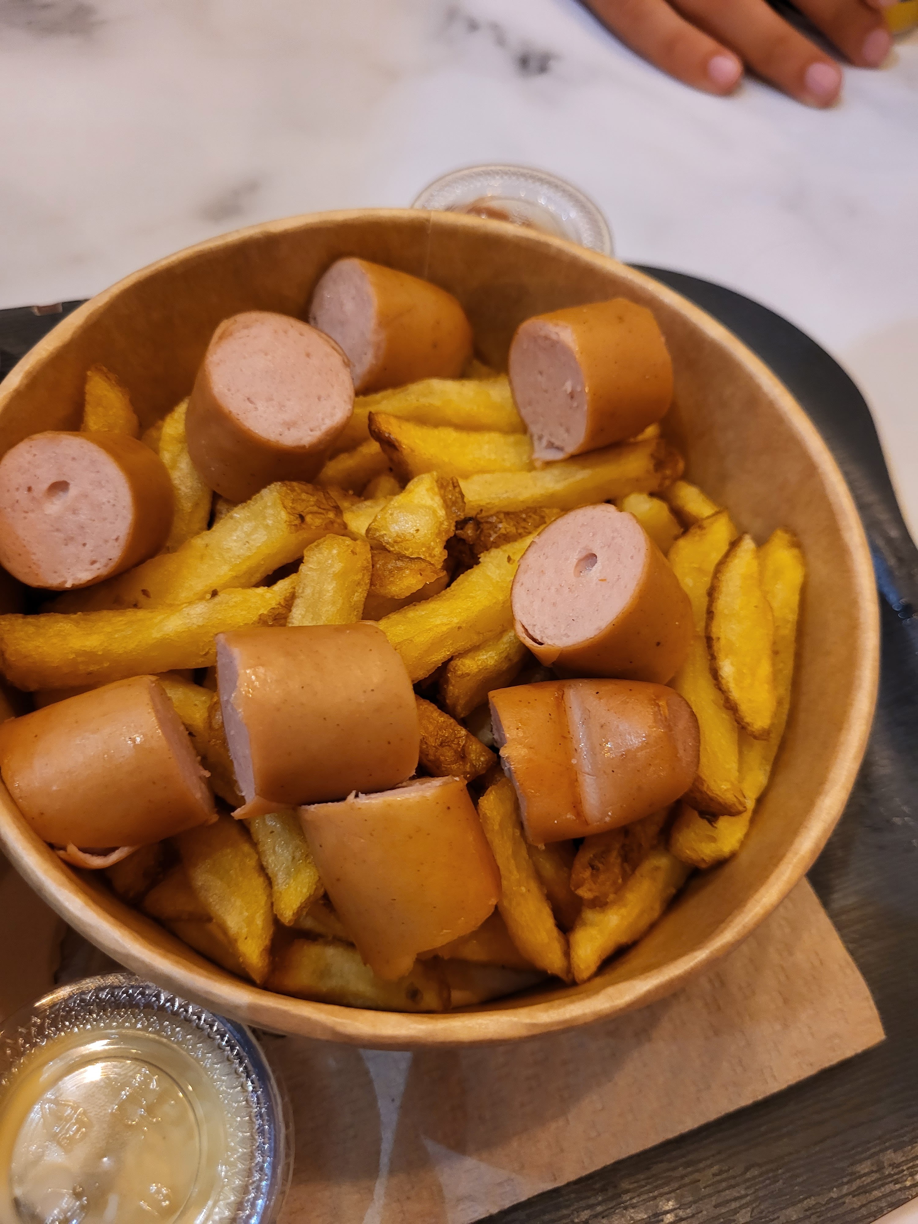 Concept sympathique mais les hots dogs manque de goût de même pour les frites c’est plutôt sec