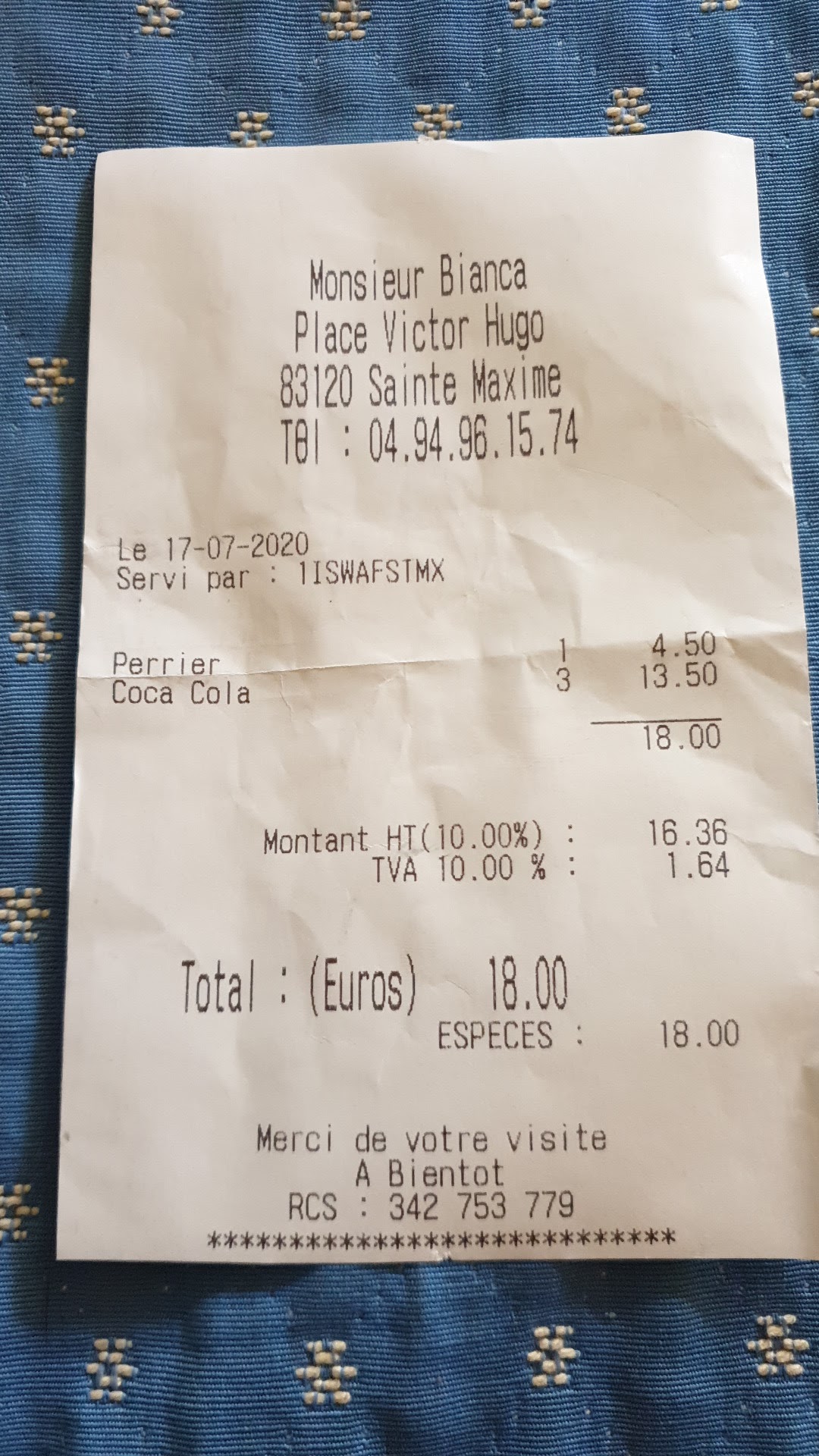 Nous avons été déjeuner chez monsieur Bianca Mention spéciale à Norbert pour son service et son sourire. J’ai pris pour ma part une pizza, la pâte n’étais pas maison… Pour le reste rien d’exceptionnel
