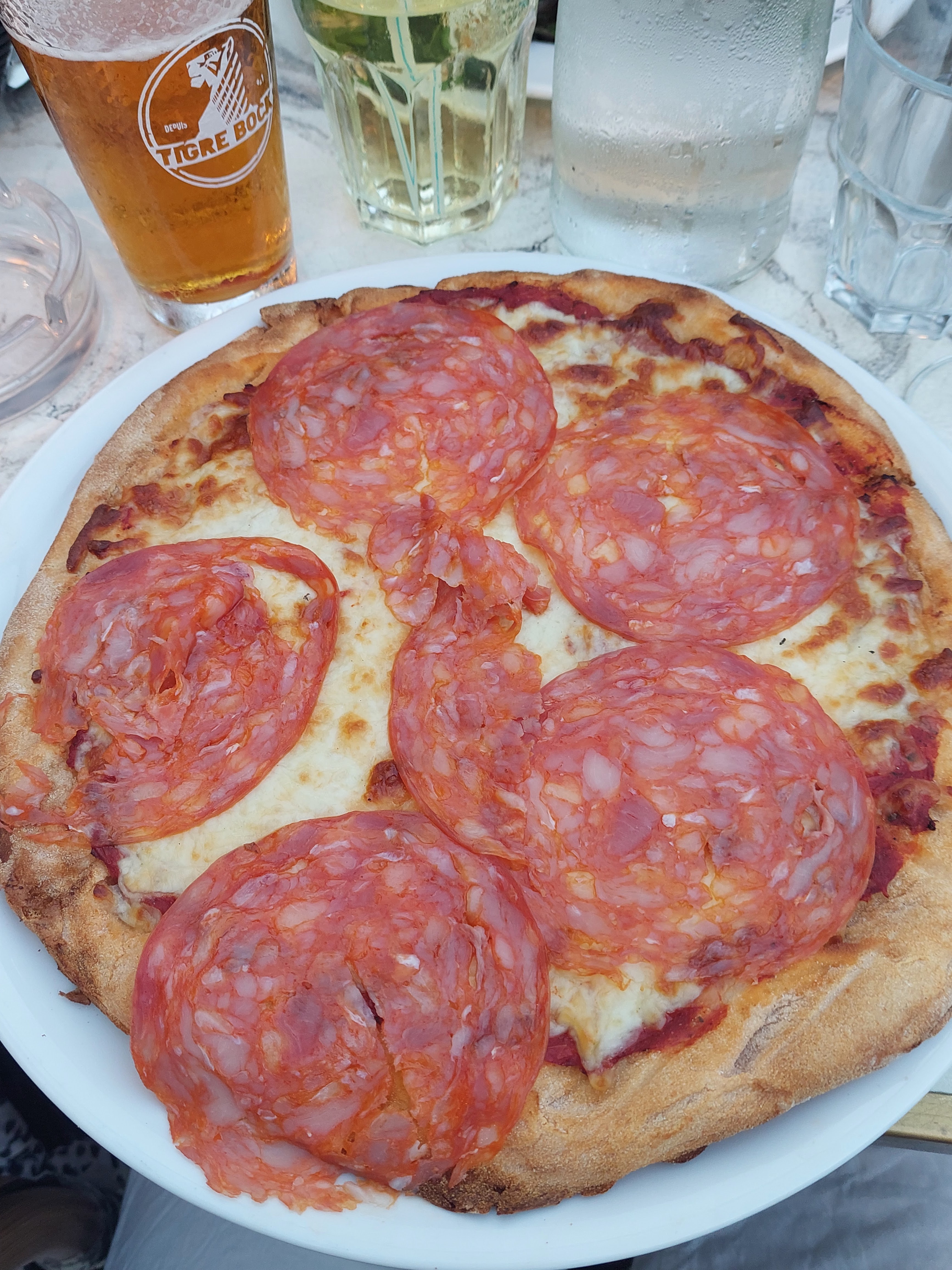 La serveuse qui s occupe de nous est toujours aussi pro!! J avais très faim il était 15h et elle a joué le jeu! Nous avons mangé une pizza à partager er du poulpe grillé! Excellent !