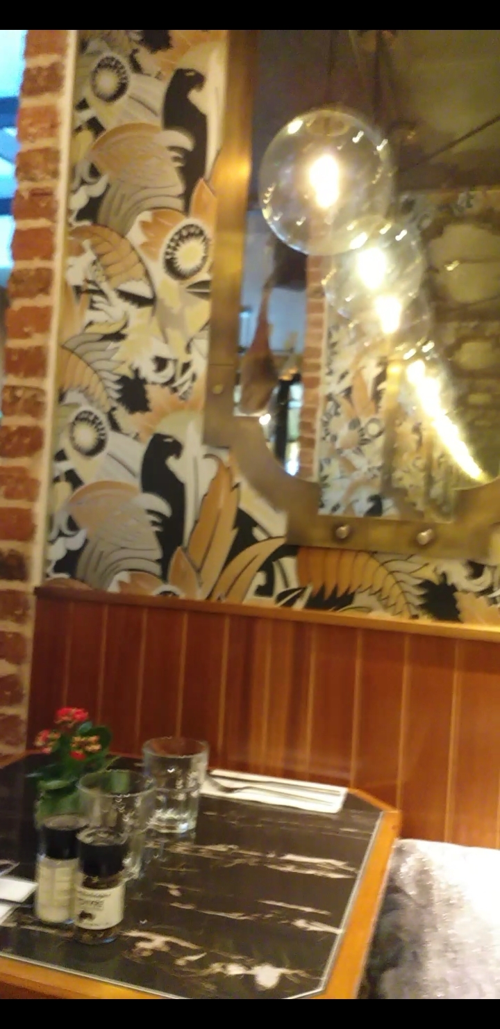 Décoration originale et agréable. Dans le coin canapé on s’y sent bien comme dans un cocon. Je me suis léchée les babines avec une excellente entrecôte ! Le prix vaut la qualité. Petit bémol pour le dessert, un défaut d’intitulé apporte une certaine déception à ma note finale. Vraiment dommage. Mais j’y reviendrai à coup sûr, l’équipe était sympa ce qui ne gâche rien.