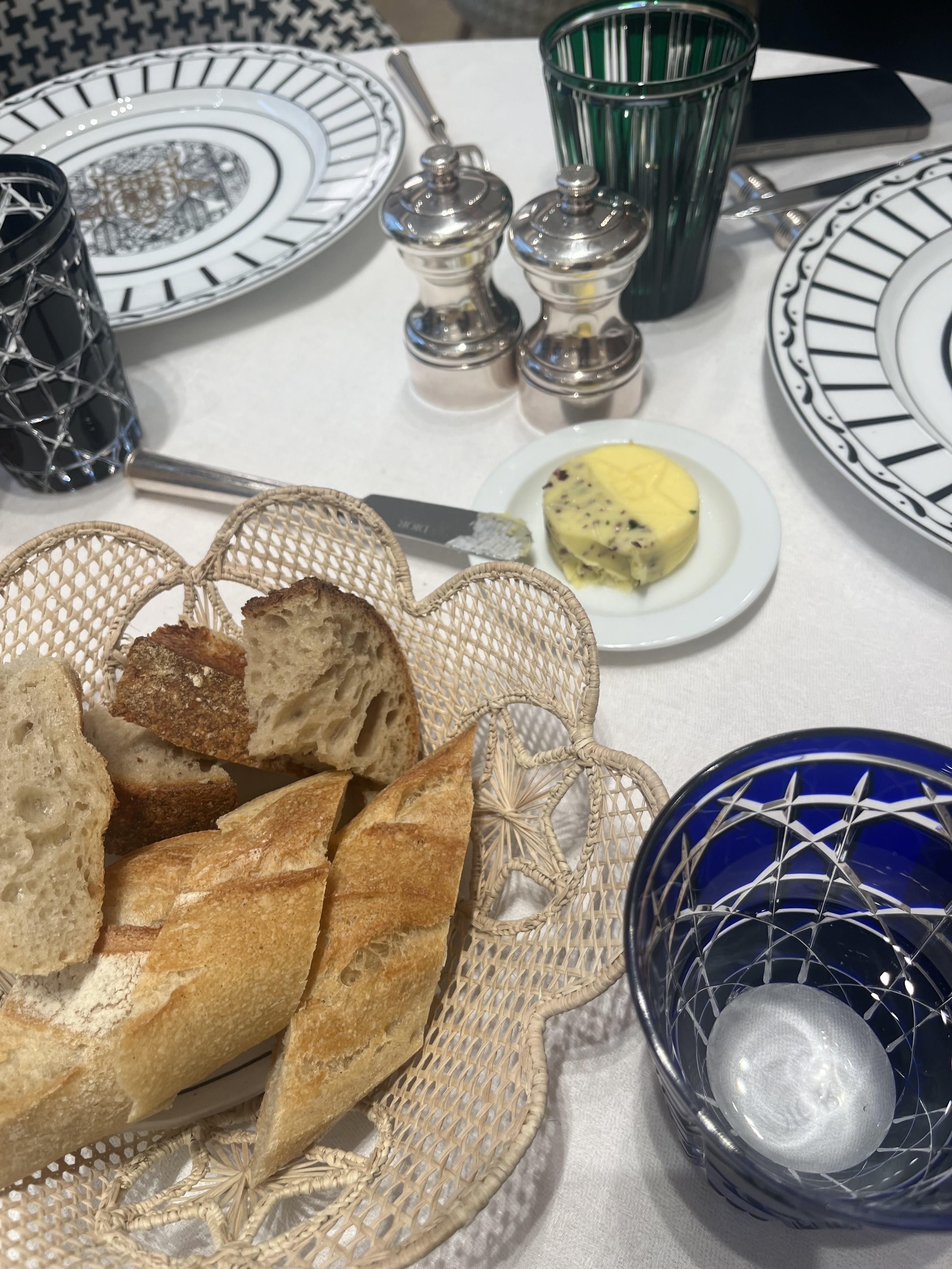 La nourriture était très bonne mais extrêmement chère. Le rapport coût/valeur est trop élevé. La nourriture et le service étaient de grande qualité. Les steak frites étaient excellents, le croque était également excellent, les desserts étaient merveilleux. Mais le cadre moderne n’est pas tout à fait à la hauteur du niveau de luxe suggéré par la nourriture. Cela semble presque incompatible. Toute la vaisselle est dior, des assiettes aux couverts, en passant par les verres, en passant par les moulins à sel et à poivre. Les nappes et serviettes Dior ont laissé BEAUCOUP de peluches sur mon pantalon et celui de ma femme.