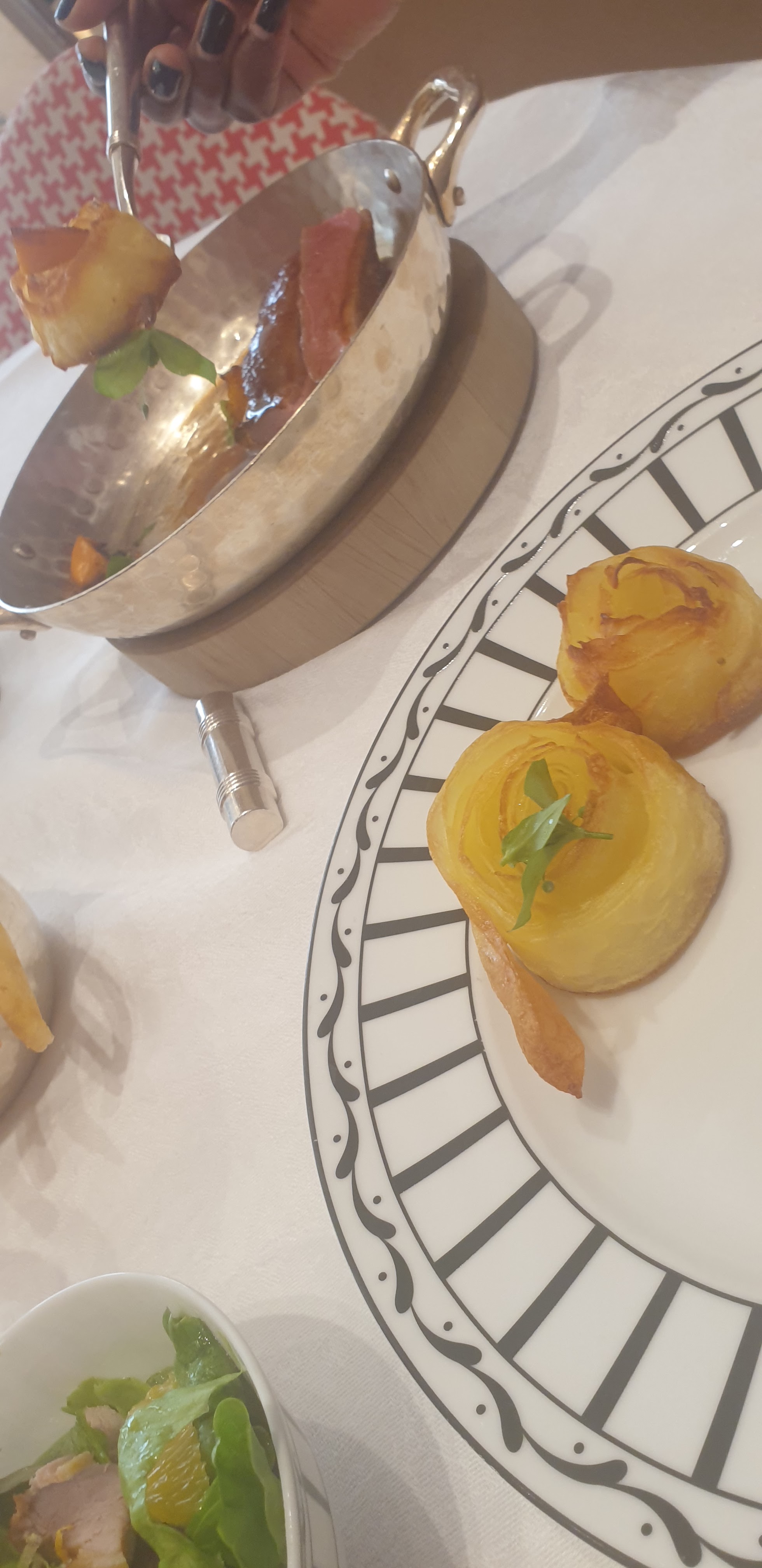 Repas délicieux et personnels aux petits soins !! L’art de la table magnifique 🤩 de la vaisselle à l’argenterie