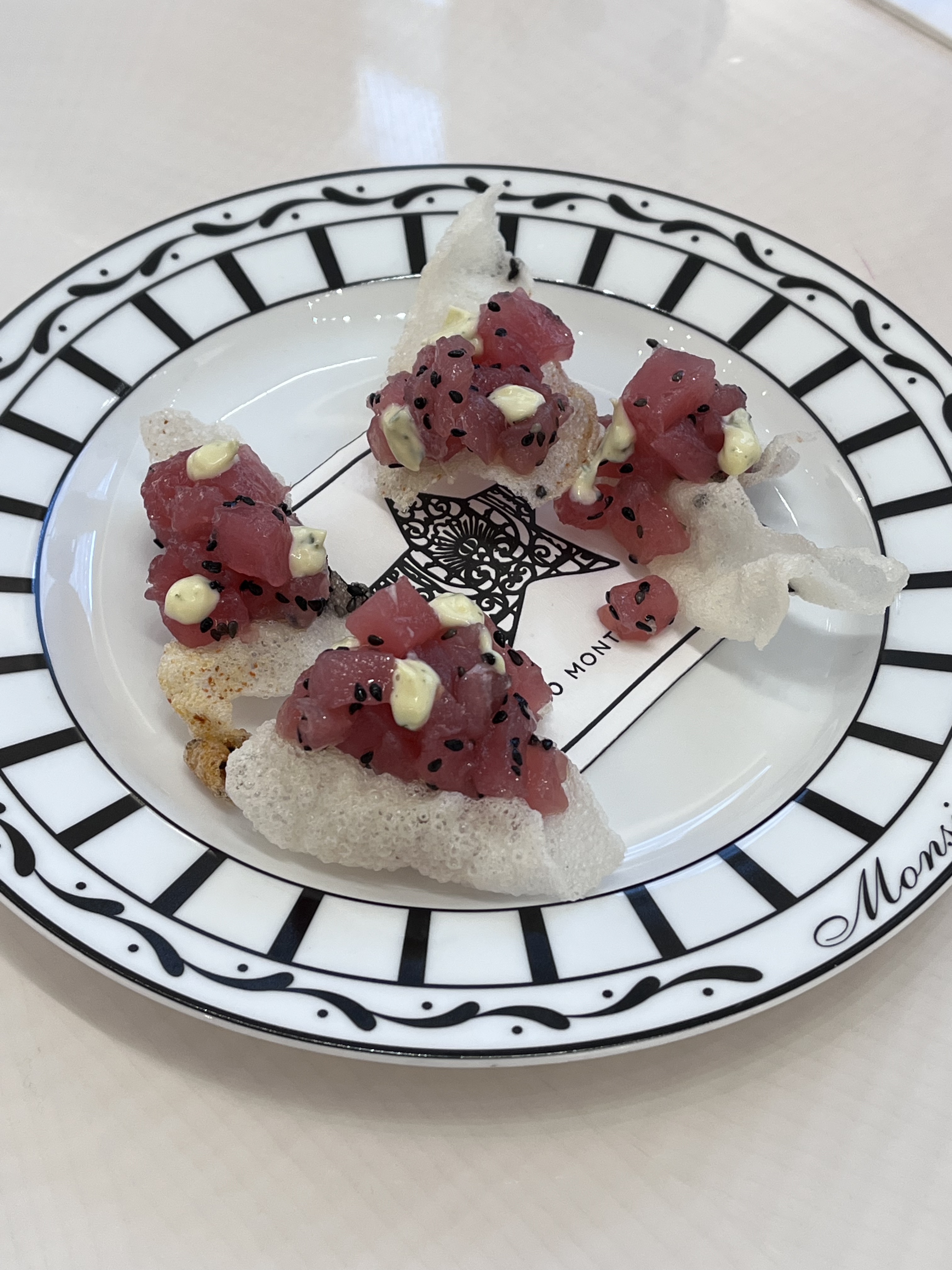 Bonjour. Très bon accueil respectueux. La recherche qu'ils ont faite sur les matériaux de décoration et le style du lieu est incontestable. Peut-être que c'était le menu que j'ai choisi, mais ayant vécu 30 décennies en France, je m'attendais à une bien meilleure qualité de nourriture. que ça, surtout à ce prix là. La présentation des plats, si ce n'est parce qu'ils étaient servis dans des assiettes DIOR, n'avait aucun intérêt, ni esthétique ni gustatif. , très bien pour les touristes et pour les photos INSTAGRAM, mais à éviter...Une fois , pas deux fois !