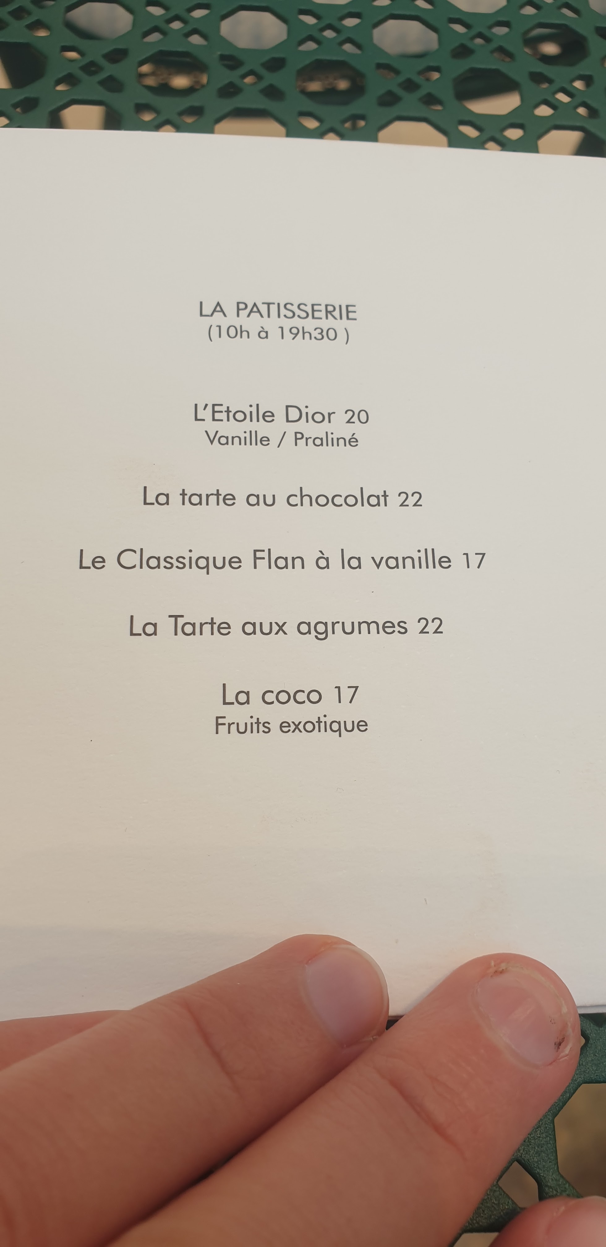Cadre Et service magnifique à l’image du lieu et de la marque … par contre en ce qui concerne les pâtisseries nous avons essayer le millefeuille , l’étoile , le flan et le soufflée honnêtement je m’attendais vraiment à une explosion de saveurs on m’a annoncé de la vanille, du caramel, de la noisette tellement hâte à en saliver d’avance ….. mais quelle déception et je mesure les mots pour ne pas être vulgaire … premièrement le Millefeuille Vanille Caramel comme écrit sur la carte preuve par l’image … montée minute svp .. bah ne pas informer qu’il y’a une gelée de citron sur le biscuit ( imaginons une personne allergique ???) mais quel surprise gustative sa anesthésie le palais et on ne peut que retenir en bouche le goût du citro, toutes les autres saveur la vanille le caramel sont vampirisées par cette acidité … je n’arrive même pas à comprendre comment un chef d’une soit disante renommé et travaillant le trottoir d’en face , n’est ce pas plutôt une forme de copinage ??? Quelle est la personne responsable chez Dior qui a pu valider une carte de dessert avec des manquements écrit sur la carte où l’on annonce des intitulés et que même le personnel n’informe pas la Clientèle sur un éventuel oublie sur la carte d’une saveur tél que le gelée de citron ??? Et qu’après avoir fait la remarque on vous signal d’un naturel hautain que bah oui y’a du citron dans le millefeuille.. non mais allô on na pas de boule de Crystal ? Je serait vraiment ouvert à une table ronde autour de cette carte de dessert avec des responsable de la maison Dior parce que vendre à votre niveau dans le luxe des pâtisseries ou les goûts sont insipides la vanille pourtant bien présente visuellement mais inexistante en bouche et la je parle du dessert signature L’ETOILE … mais qui a pu valider une telle association de saveurs … no comment sur le Soufflé Noisette où l’on avait l’impression de manger une omelette à la noisette le reste honnêtement a part le FLAN VANILLE rien à dire lui était à la hauteur… bref à éviter .. la pâtisserie ça ne s’improvise pas et j’espère que la Maison Dior pourra rectifier et nous offrir des pâtisseries à la Hauteur de leur renommée Mondiale …