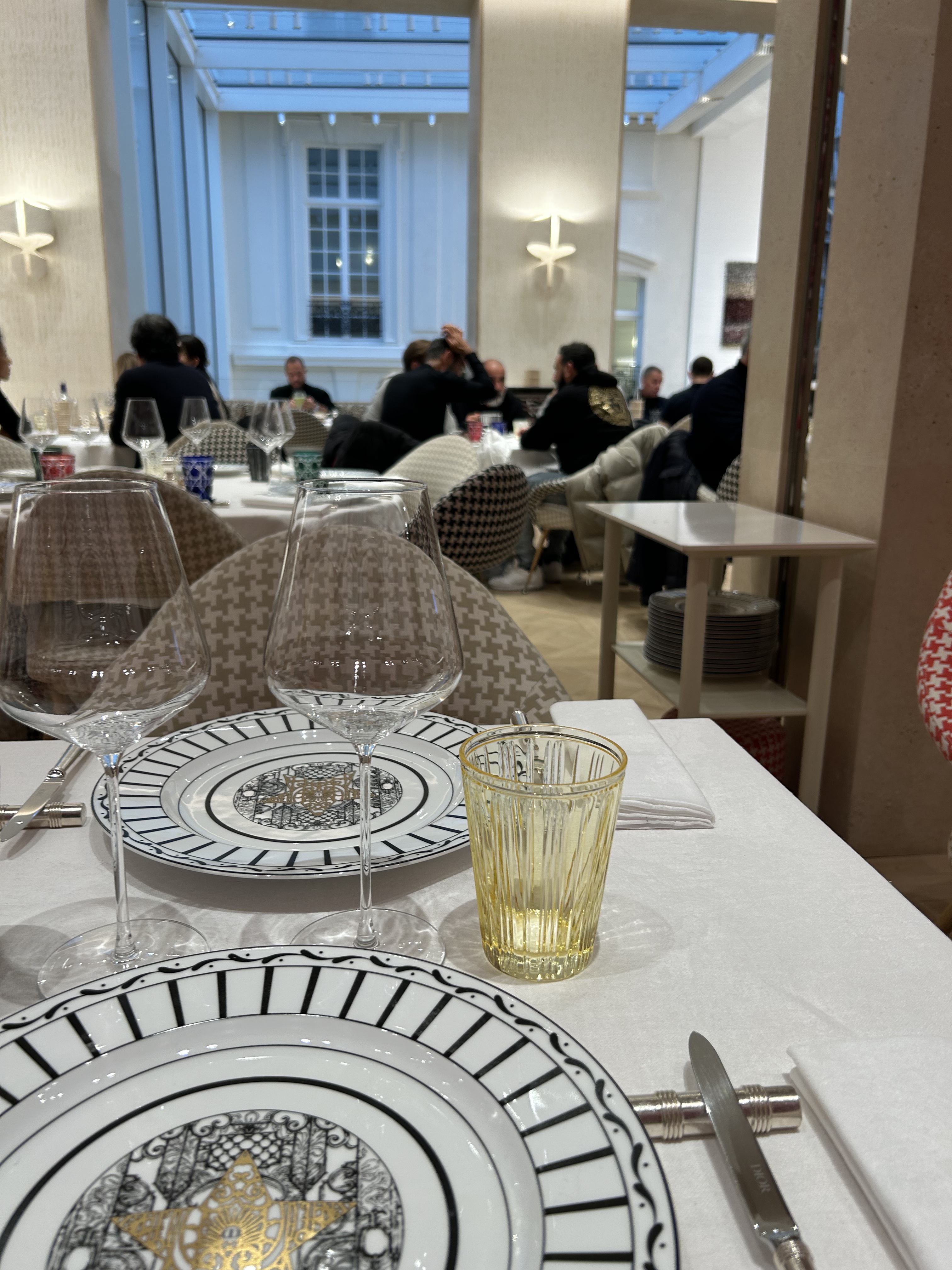 Servis dans la vaisselle Dior, ce fut excellent . Déco sympa , ambiance quelconque, un peu cher mais en même temps dans une maison de luxe on ne peut pas s'attendre a du cheap meal