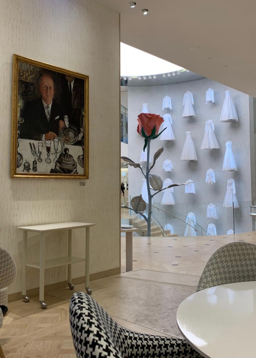 Un lieu splendide au milieu de la boutique grandiose. Le service est parfait : le personnel est souriant, agréable, présent tout en état discret. La décoration et la vaisselle Dior est superbe. Nous avons pris une laitue homard/avocat et un filet de bœuf. Le 🦞 était vraiment délicieux mais un peu perdu dans la 🥬, quant au filet de bœuf il était tendre à la perfection et les frites maison étaient croustillantes et parfaites. Et comme dessert un savoureux Flan. Nous y reviendrons avec plaisir.