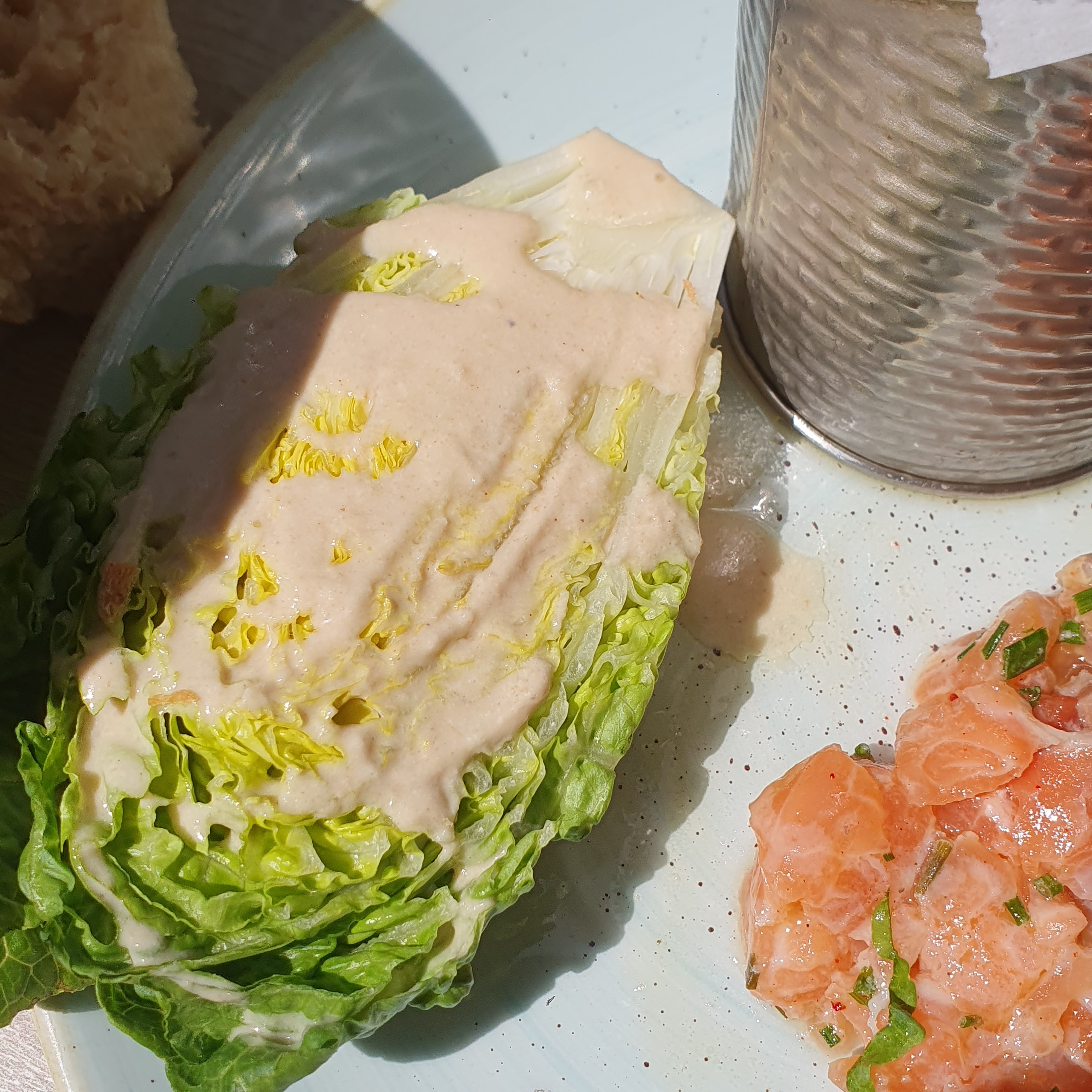 Salade Caesar décevante et il faut vraiment revoir la cuisson de l'oeuf parfait ... Le blanc était translucide et presque liquide donc pas du tout cuit. C'était écoeurant. L'extérieur est super mais l'intérieur n'a aucun intérêt.