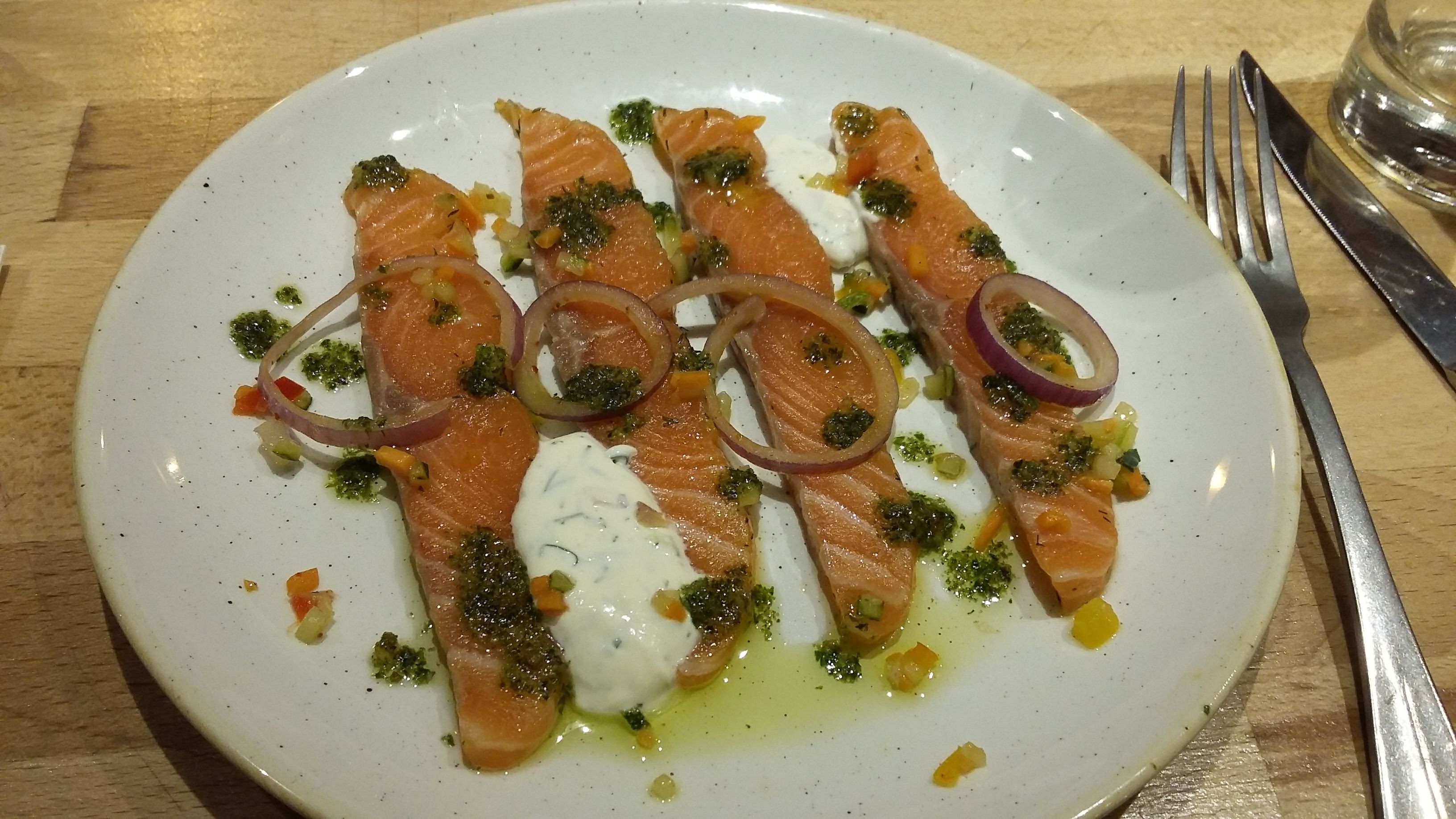 Déçu par le rapport qualité prix,temps d'attente long pour être servi un midi. J'ai pris une entrée /plat ma fille un plat On a payé 50 euro je trouve ça cher pour un midi . Le plat saumon mariné extrêmement fade et pas goûteux servi avec une demi sucrine sur laquelle est déposé une sauce horrible immangeable.