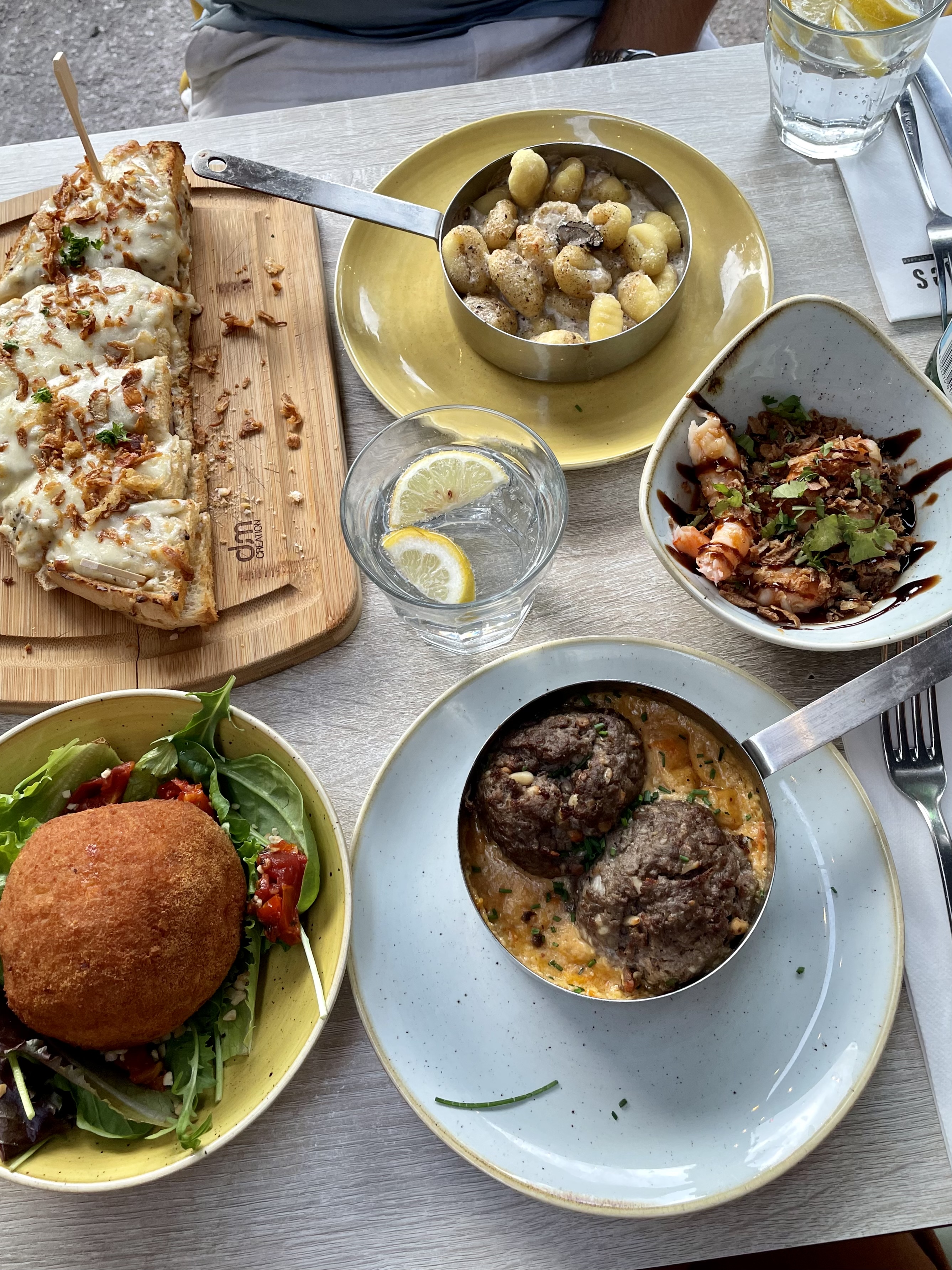Je pense que cette adresse a bonne notoriété via son emplacement mais la nourriture est vraiment moyenne. Manque de saveur. Exemple: boulette de bœuf au camembert, sans goût de camembert. Les gnocchis frits sont surtout des gnocchis à la poêle… alors on nous met de la truffe car c’est à la mode mais cela n’apporte pas la saveur qu’on attend des plats. Je ne recommanderai pas particulièrement cette adresse et n’y retournerai pas personnellement.