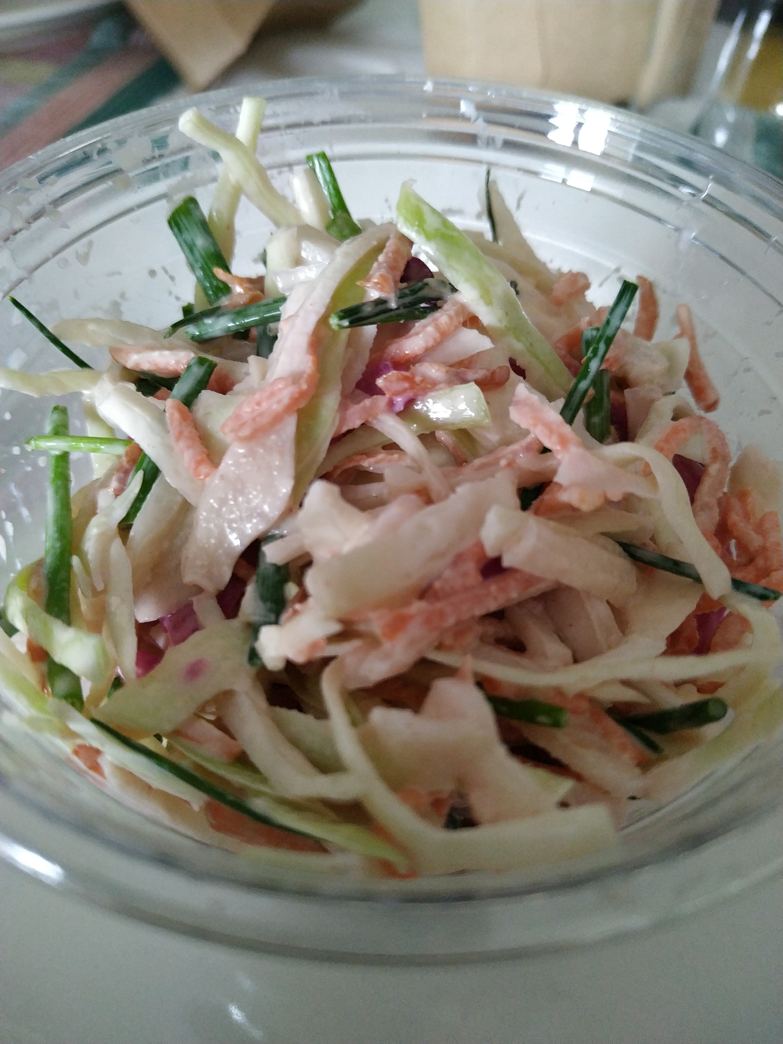 Le service était gentil, on était très positif sur l’ensemble de notre commande de famille (burgers) mais en retrouvant un bout de plastique noir dans la salade choux ça nous a un peu surpris. Une malchance on pense...