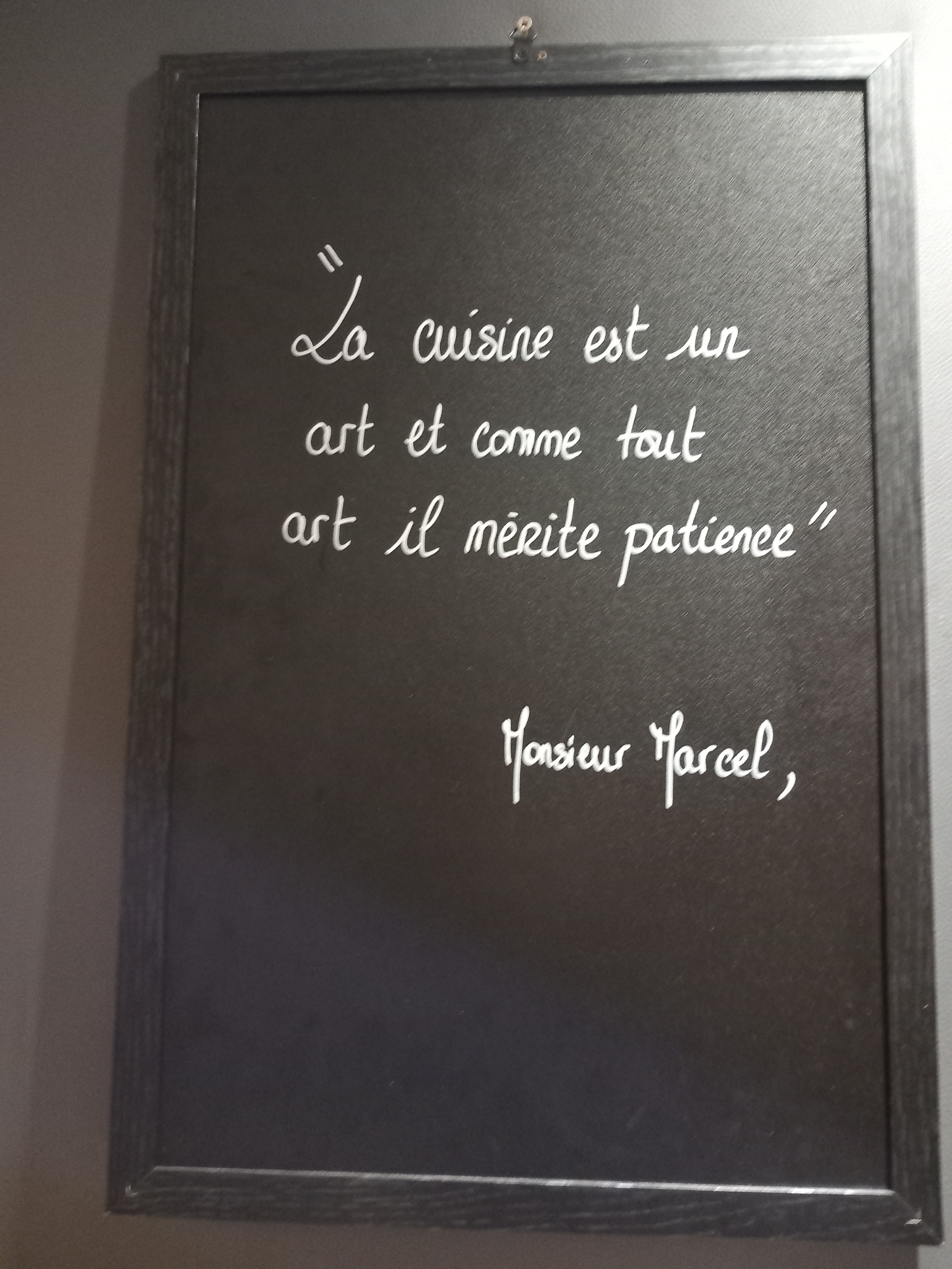 Pour nos 3 ans de mariage j'ai choisi ce restaurant sur internet car le nom me faisait sourire...Vraiment aucun regret!!!!Nous avons été accueillis très aimablement par Stéphanie ainsi que Marcel ...Après notre choix de menu, Marcel nous a extrêmement bien conseillé pour le vin et le repas était excellent!!!!Personnel très agréable. Nous sommes venus par hasard, nous reviendrons exprès 😀