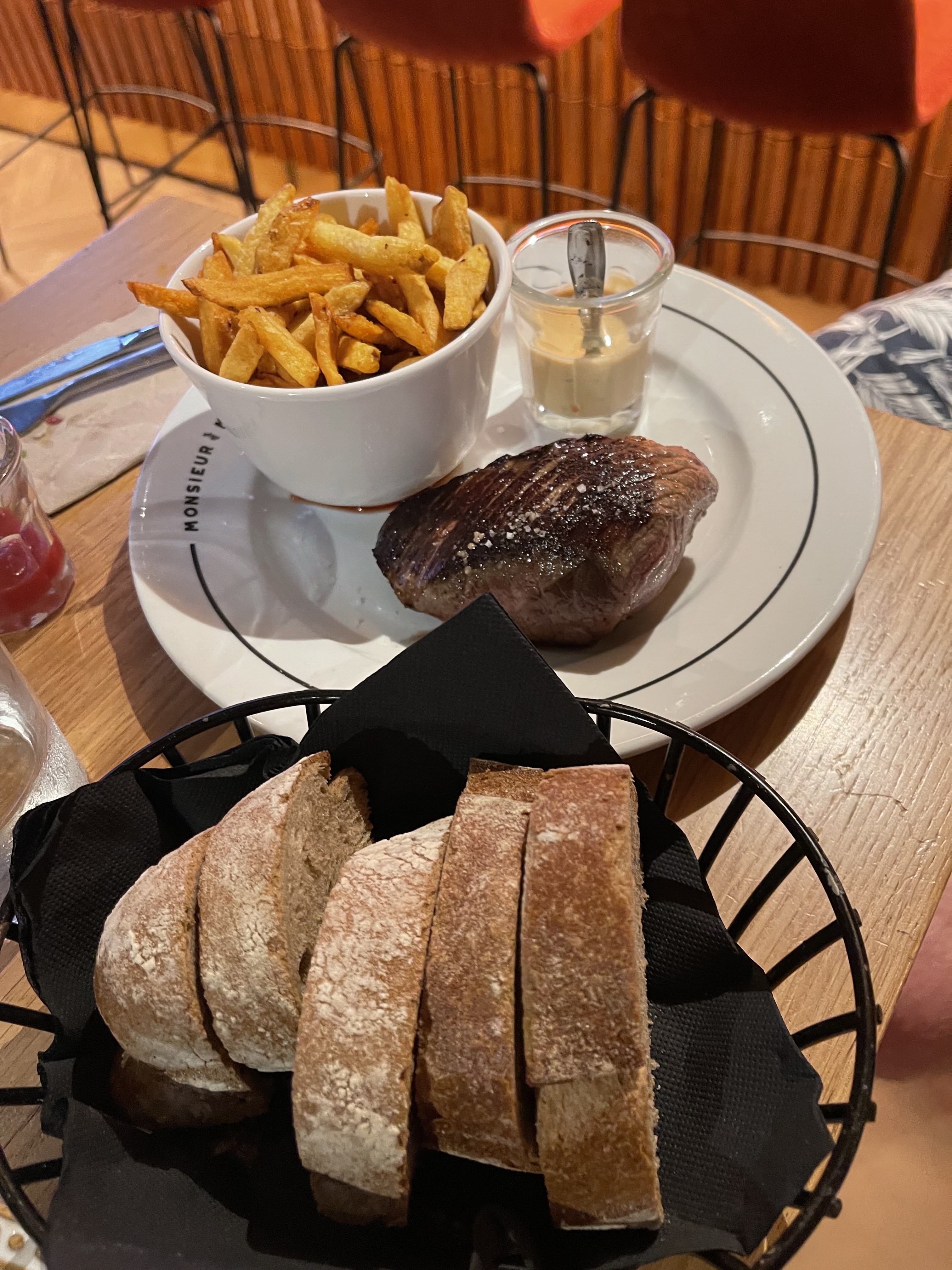 Cadre superbe avec vue sur le port de Capbreton. Nous avons très bien mangé. Le lieu est très agréable avec beaucoup d'espace tant à l'intérieur que dehors. Aménagé et décoré avec goût Monsieur Mouette mérite amplement de s'y poser pour un verre, une planche ou un repas à table. Un bémol tout de même. Pièce de bœuf servie sans accompagnement. Prévoir 5€ pour rajouter des frites dans l'assiette. Ce n'est pas pour le prix, mais je trouve le geste très pingre.