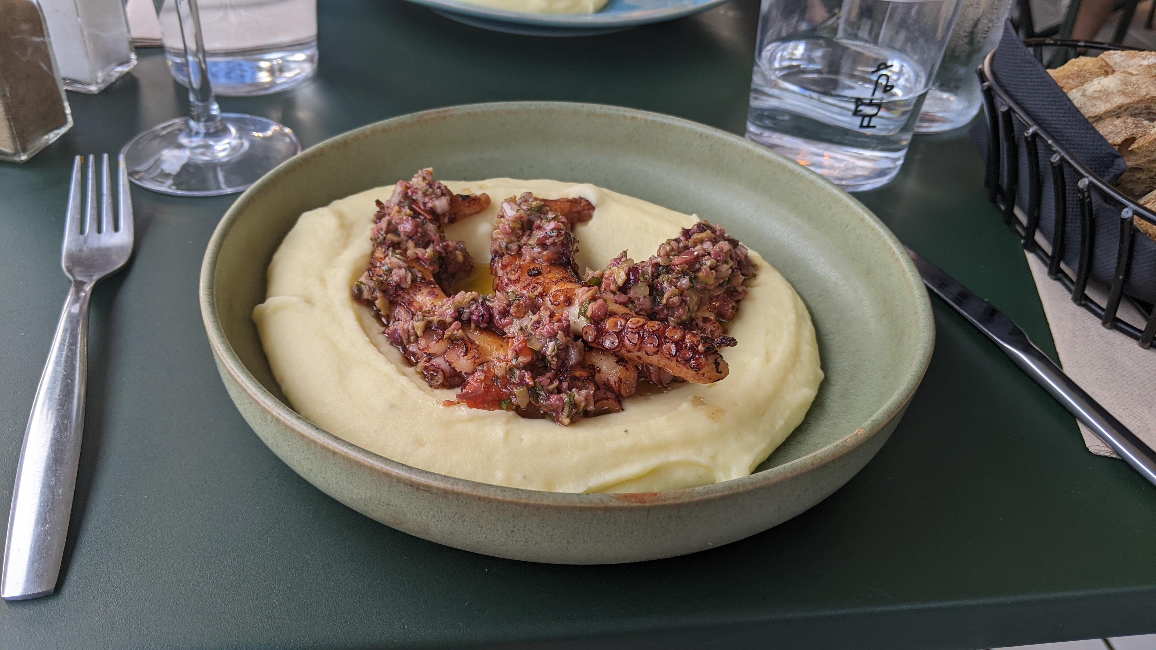 Une très bonne ambiance, un lieu très agréable. La cuisine est décevante, le poulpe est plastique (on était 2 à prendre ce plat). Les déserts sont très classiques. Rien à dire sur le service, le personnel est agréable.