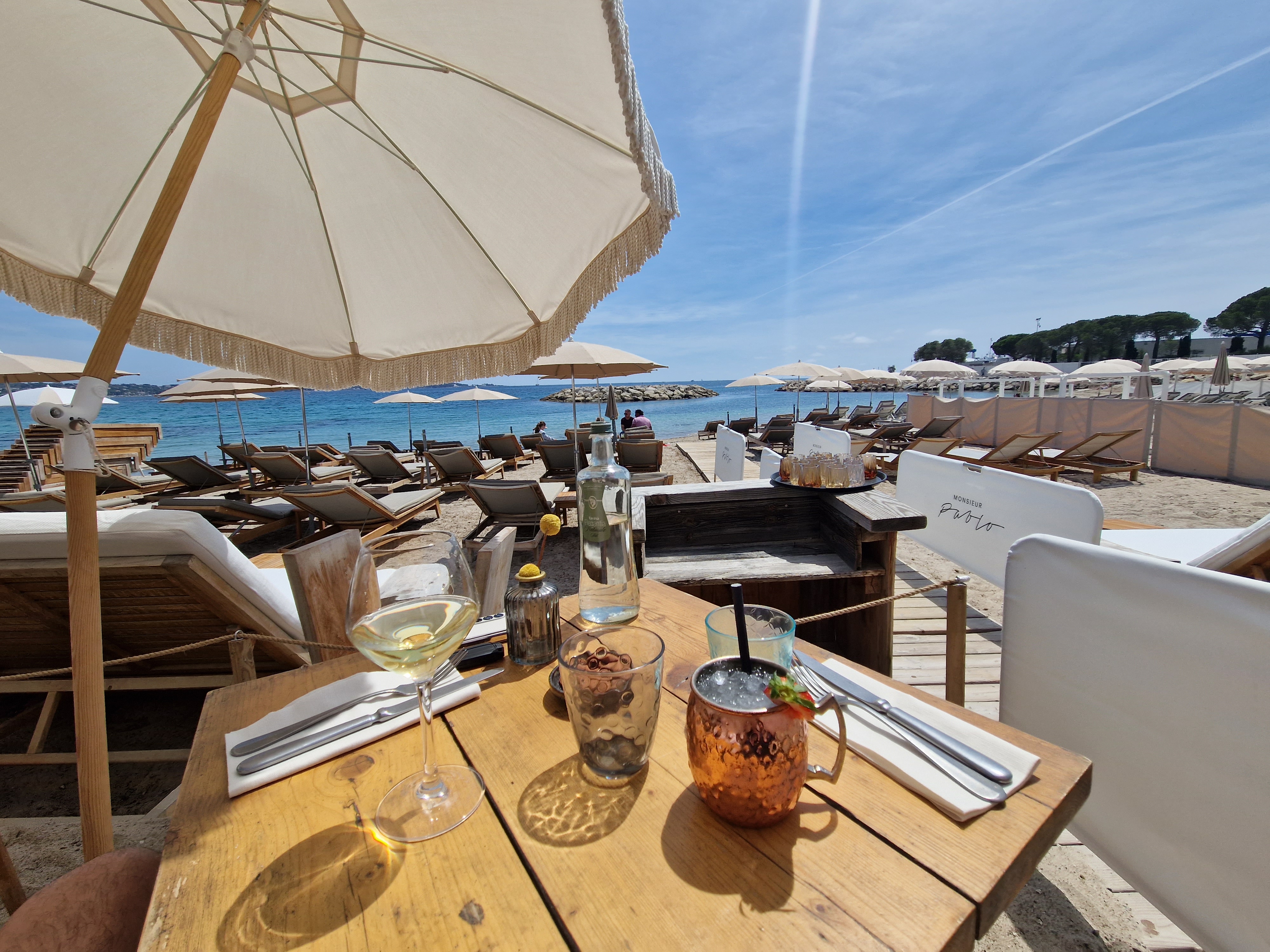 Très jolie vue nous sommes venues en lounge bien installées les pieds dans le sable sur un grand transat avec des coussins et de très jolis parasol en crochets coton… Nous avons beaucoup trop patienté avant d’être enfin prises en compte ,à notre demande…la commande est arrivée assez rapidement mais là encore nous avons dû réclamer du pain car planche charcuterie et fromage…et aussi un couteau (comment sinon partager le fromage…) La même serveuse s’occupait du resto et du lounge en même temps…le manque de personnel était évident,en tous cas ils sont très aimables et souriants ses jeunes. Planche très bien,beignets de fleurs de courgettes trop imbibés d’huile par contre. chardonnay très bien les glaçons étaient bien là…pour le cocktail au concombre il était très « concombre »… Puis dessert ,super 3 pâtisseries très bonne et originales,après renseignements elles venaient des cuisines du Belles Rives à Juan,donc topissimes ! Prix corrects vu l’emplacement de rêve !nous reviendrons sûrement Très sympa !🙂 .