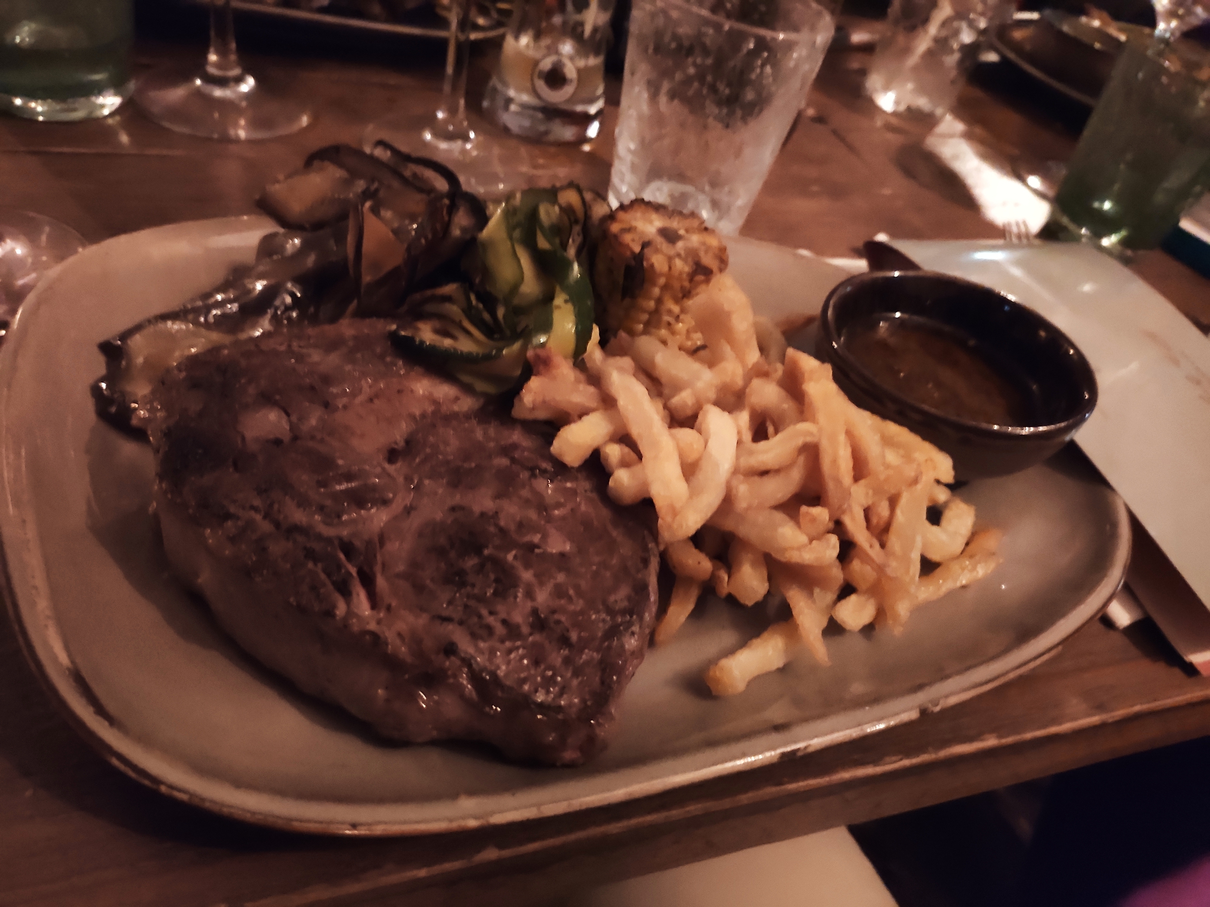 Table pour 30, 7 entrecôtes pour 10 personnes ... Vins et eau servit en fin de repas Je ne recommande pas pour un repas de groupe Cuisiner et gérant de mauvaise foi