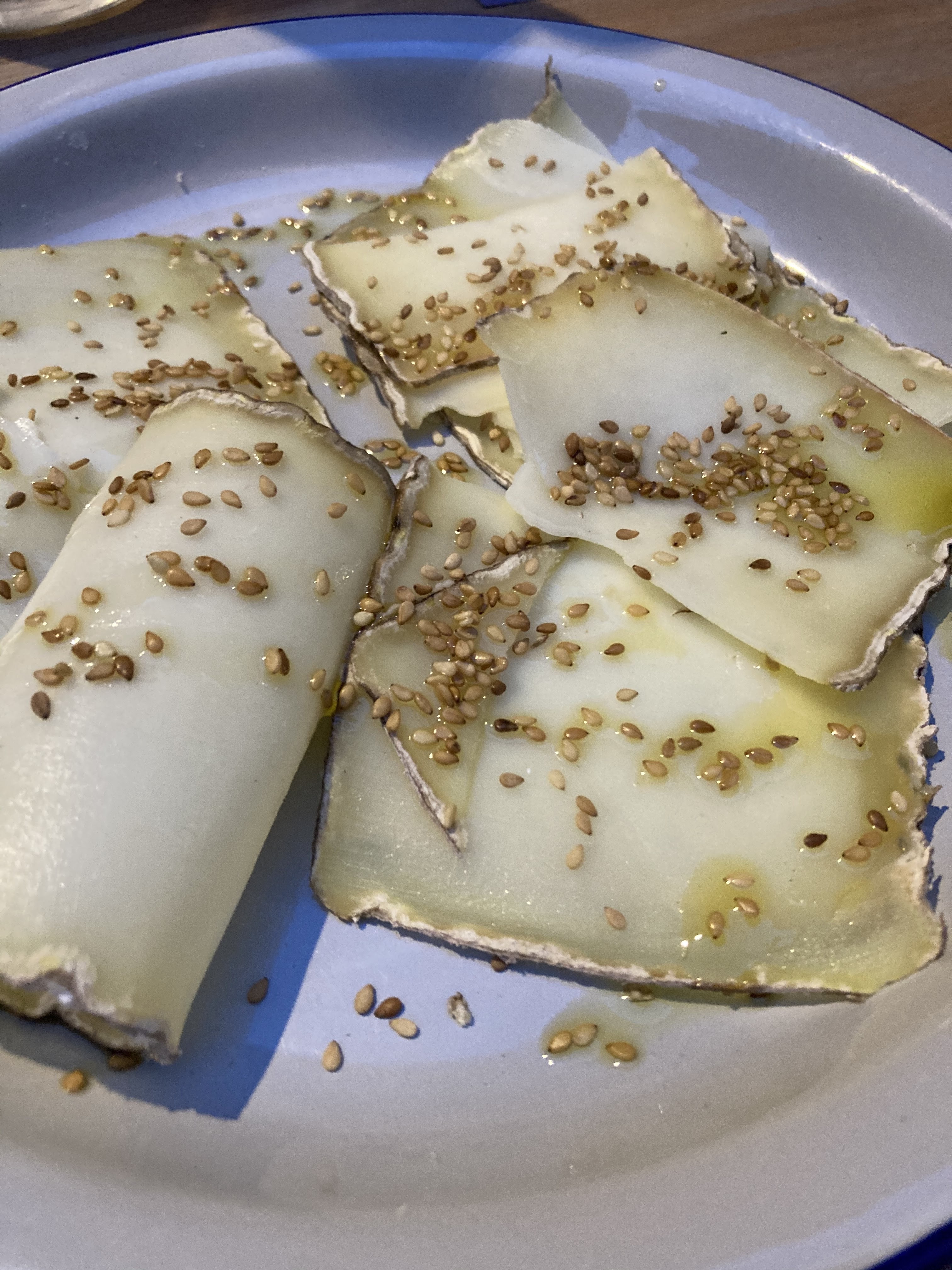Les aubergines vendues comme un plat sont en fait une entrée. Il en est de même pour le thon. De surcroît les aubergines avait une peau si dure qu’elle était inmangeable.