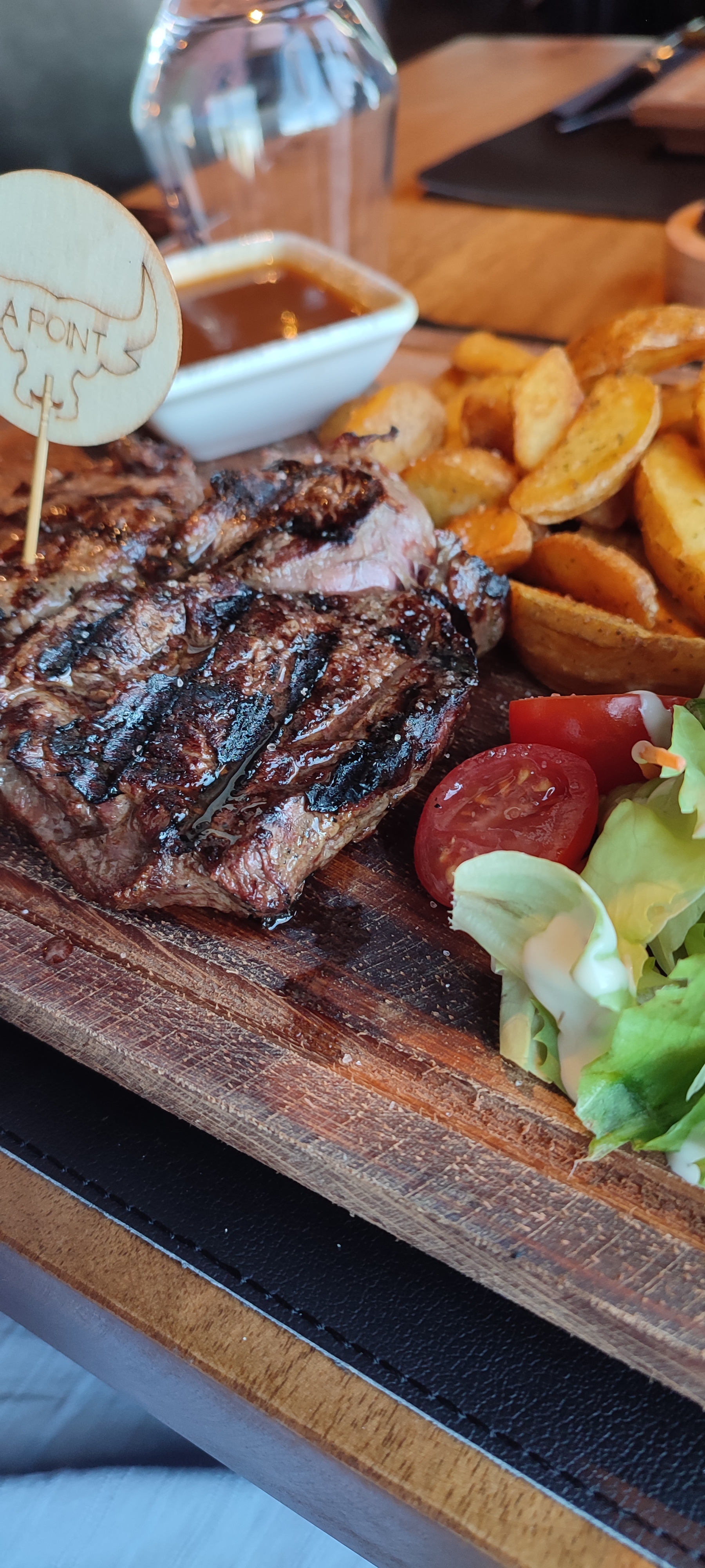 Restaurant correct, les plats sont bons et généreux. Dommage que ce ne sont pas des frites fraîches et les potatoes ne sont pas précisées sur la carte. Pas de sauce comme la mayo ou ketchup de proposées ( peut être proposer une mayo maison en plus) Pas de plat spécial pour les enfants, ils doivent donc choisir un plat adulte et cela pourrait éviter certainement du gaspillage pour les petits mangeurs. N'hésitez pas à donner avec le plat un couteau à steak. Serveuse très gentille et agréable dommage pour elle qu'elle avait beaucoup de tables à gérer ce soir là. Biere commandée avec le plat mais non arrivée. Beaucoup d'attente mais nous comprenons évidemment qu'il s'agissait de votre premier service. Peut être éviter de prendre toutes les commandes en même temps et peut être un peu plus rapidement. Lorsque la serveuse a débarrassé la table, on nous a jamais demandé si on prenait un dessert ou non ou café par exemple Ambiance cool avec le saxophoniste en live