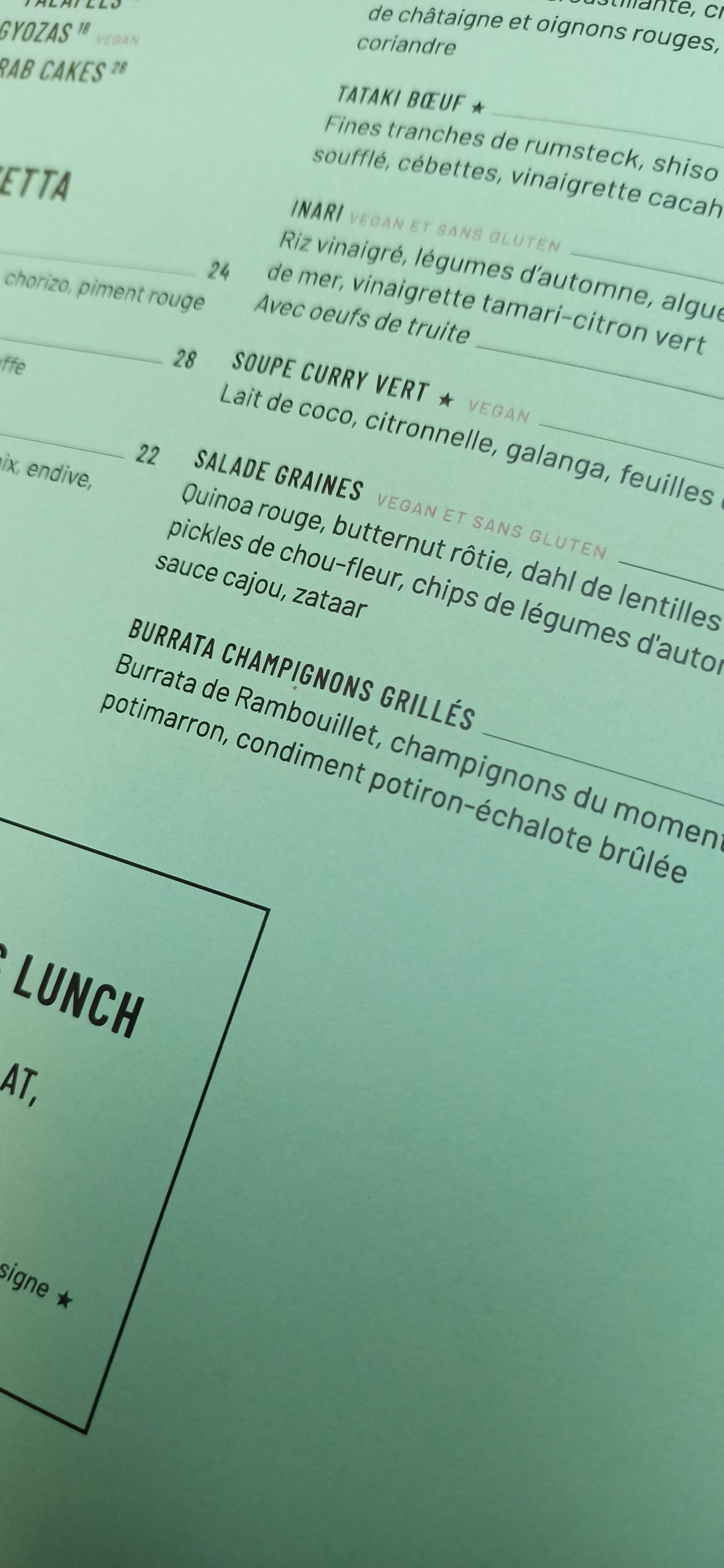 beau cadre, belle carte et cuisine bien realisée. cependant pour moi cela manque de plats legers (lorsque j'y suis allée) , un peu trop junk pour moi (tacos, poulet frit, burger, burrata) , un poisson cru m'a manqué, un poisson grillé ou une viande blanche aussi en plat mais on s'accomode.. En revanche musique trop forte et placement en salle pas agreable devant cuisine sans alternative alors que le restaurant etait à moitié vide à notre arrivée et notre table était reservé depuis plusieurs jours.. Dommage....Dommage
