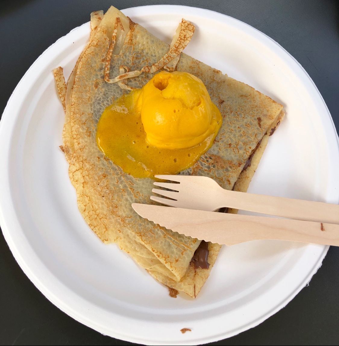 Crêpe au Nutella, pardon Nutella a la crêpe. Ils ont vidé le pot de Nutella sur la crêpe. Écoeurant. Ne valait certainement pas 6€. Attente assez longue avant d'être accueilli. Très déçu.