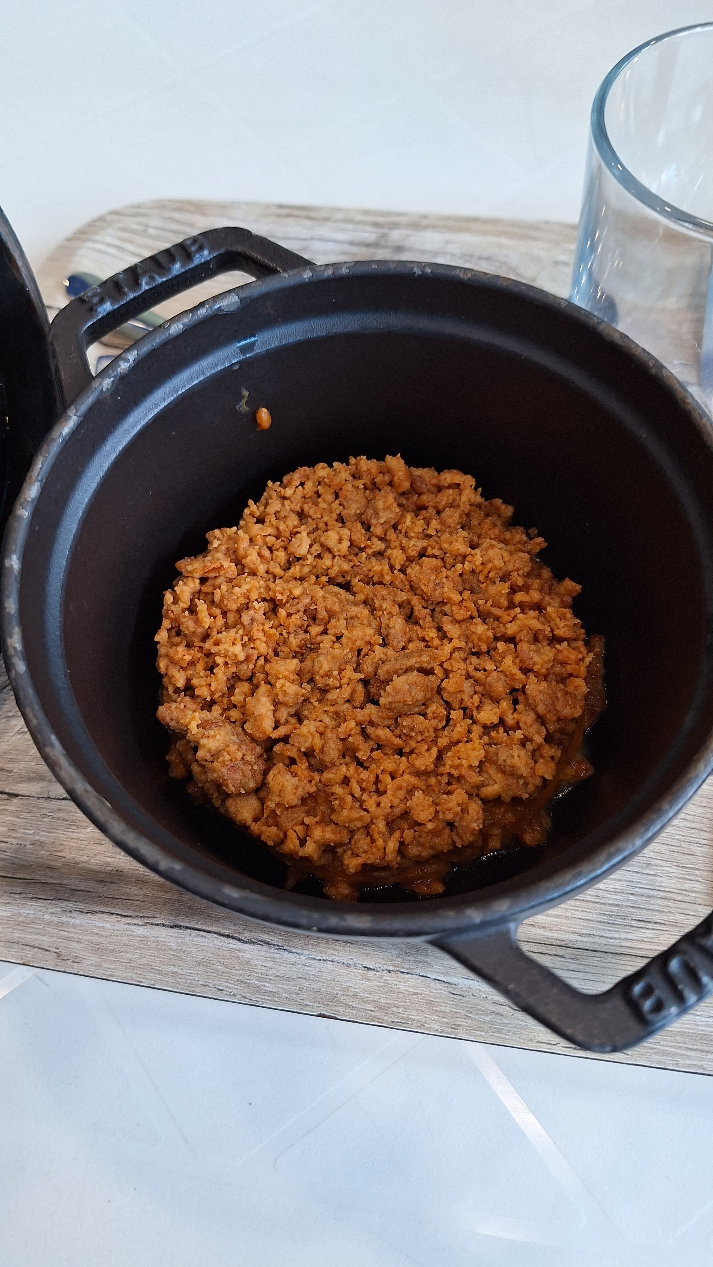 L'intention est bonne mais le résultat n'y est pas. Ce n'est pas un libre service même si c'en a l'air. Le principe des cocottes est bon pour garder les plats au chaud, mais les quantités proposées dans les plats sont à la limite de l'escroquerie (cf photo). La formule enfant est incohérente car ce sont les mêmes portions que les adultes... on est donc tenté de prendre cette formule en tant qu'adulte mais peut-on ? Au final j'ai du mangé une demi baguette (en libre service celle là) pour combler la taille du plat : en termes de coût, d'expérience client, de qualité de service, d'équilibre alimentaire, vous devriez en mettre un peu plus dans les cocottes, on mangerait moins de pain et on passerait un meilleur moment. L'équipe est sympa, un peu débordée au moment du rush. Mon crumble patate douce très bon, mais avec une portion digne d'une entrée chaude plus que d'un plat...