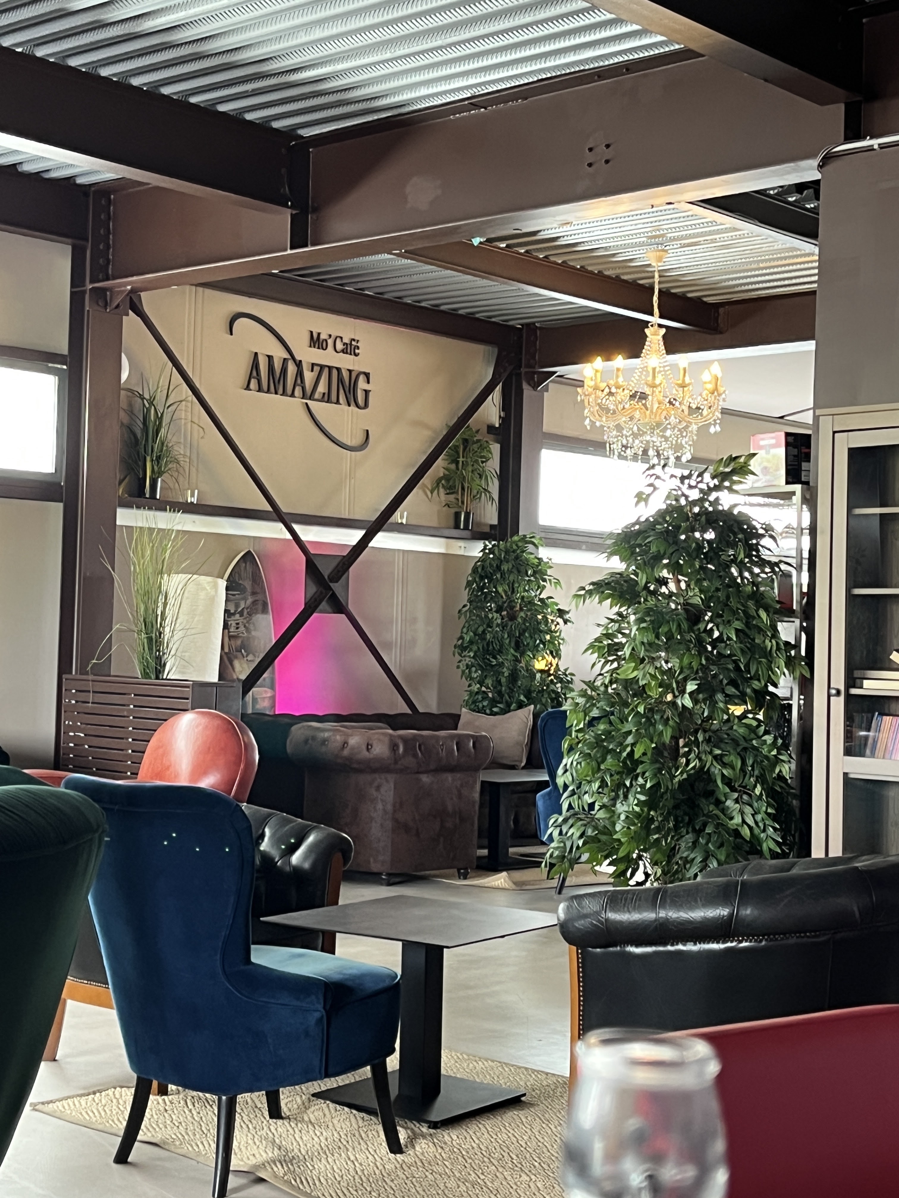 C'est la toute première fois hier soir que j'allais au Mo café.j'ai découvert un endroit spacieux, L'accueil est fort sympathique. La décoration est simplement superbe.! Nous avons pu également grignoter. Tout en prenant notre verre.. Il est évident que j'y retournerai.! Ce n'est pas cinq étoiles que j'aurais voulu mettre mais davantage.!