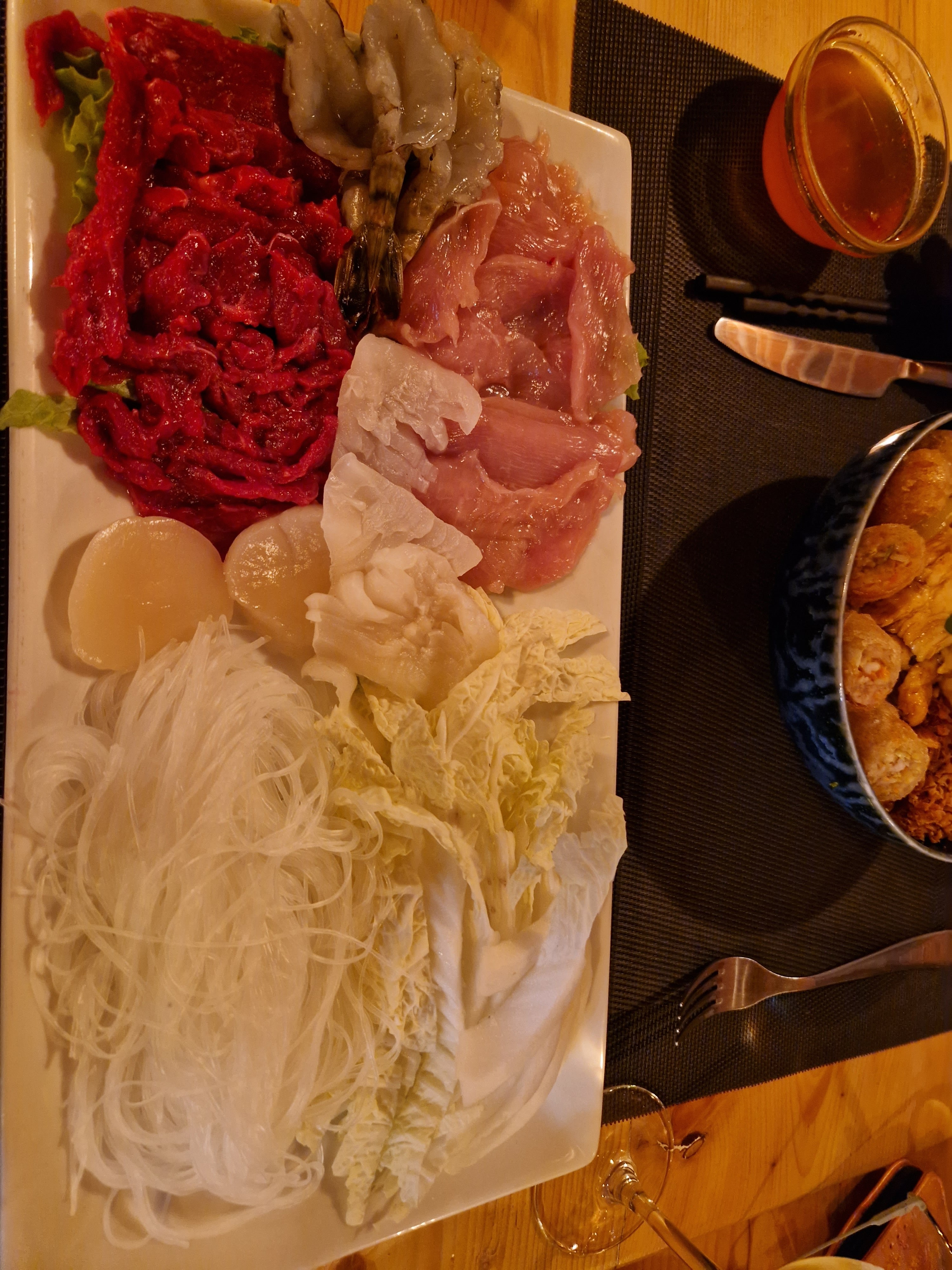 Un accueil avec le sourir, de délicieux cocktail, des produits variés sans en être à profusion pour privilégier la qualité, avec surtout une variété de façon de les cuisiner et de les épicer. Mention spéciale à la fondue. Bref, c'est un sans faute! Nos parents comme nos enfants ont adoré ce repas de famille improvisé au Moom Thai.