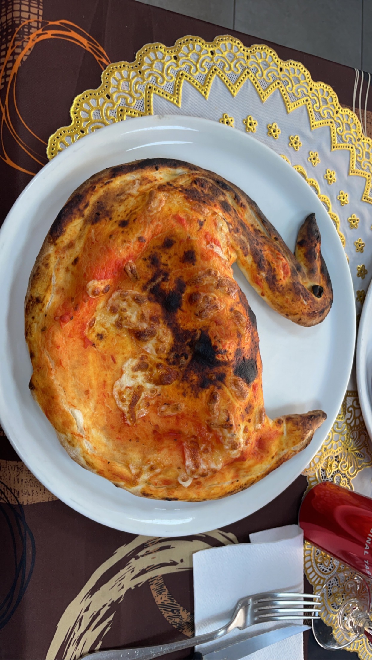les propriétaires sont très sympathiques et accueillants, la nourriture est bonne et la calzone a la forme d'un cygne. mon enfant a adoré.