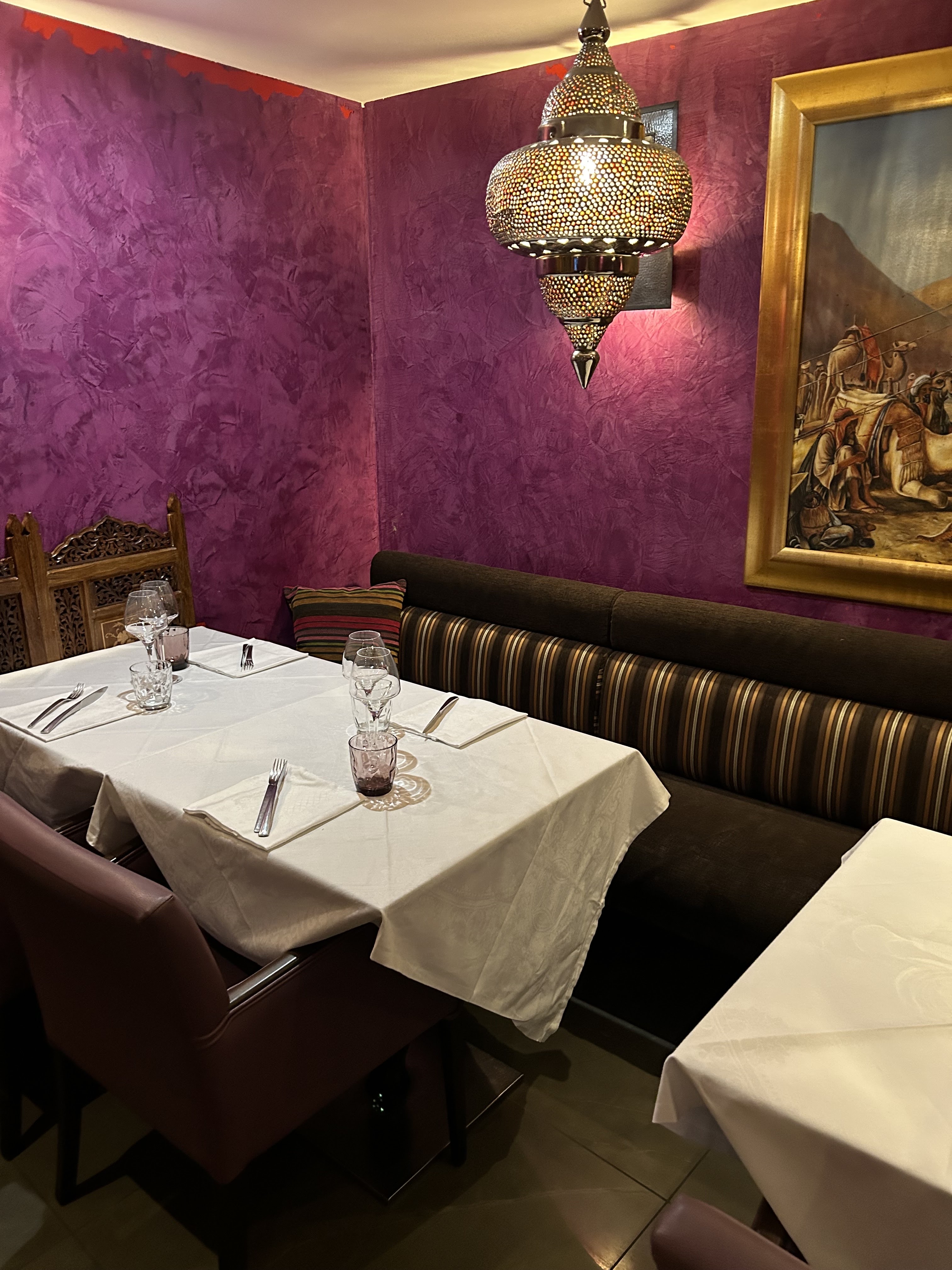 Restaurant situé en plein centre de Divonne - Lorsqu'on a envie d'un bon couscous, c'est l'endroit idéal pour le manger - Accueil très chaleureux et convivial. Ai pris le couscous à l'agneau. Servi rapidement avec tous les légumes, viande, semoule qui compose ce plat et qui était vraiment delicieux, prix de 25 €. Oui, j'y retournerai et le recommande chaleureusement, il y a bien d'autres plats typiques du Magreb à choisir sur leur carte bien remplie