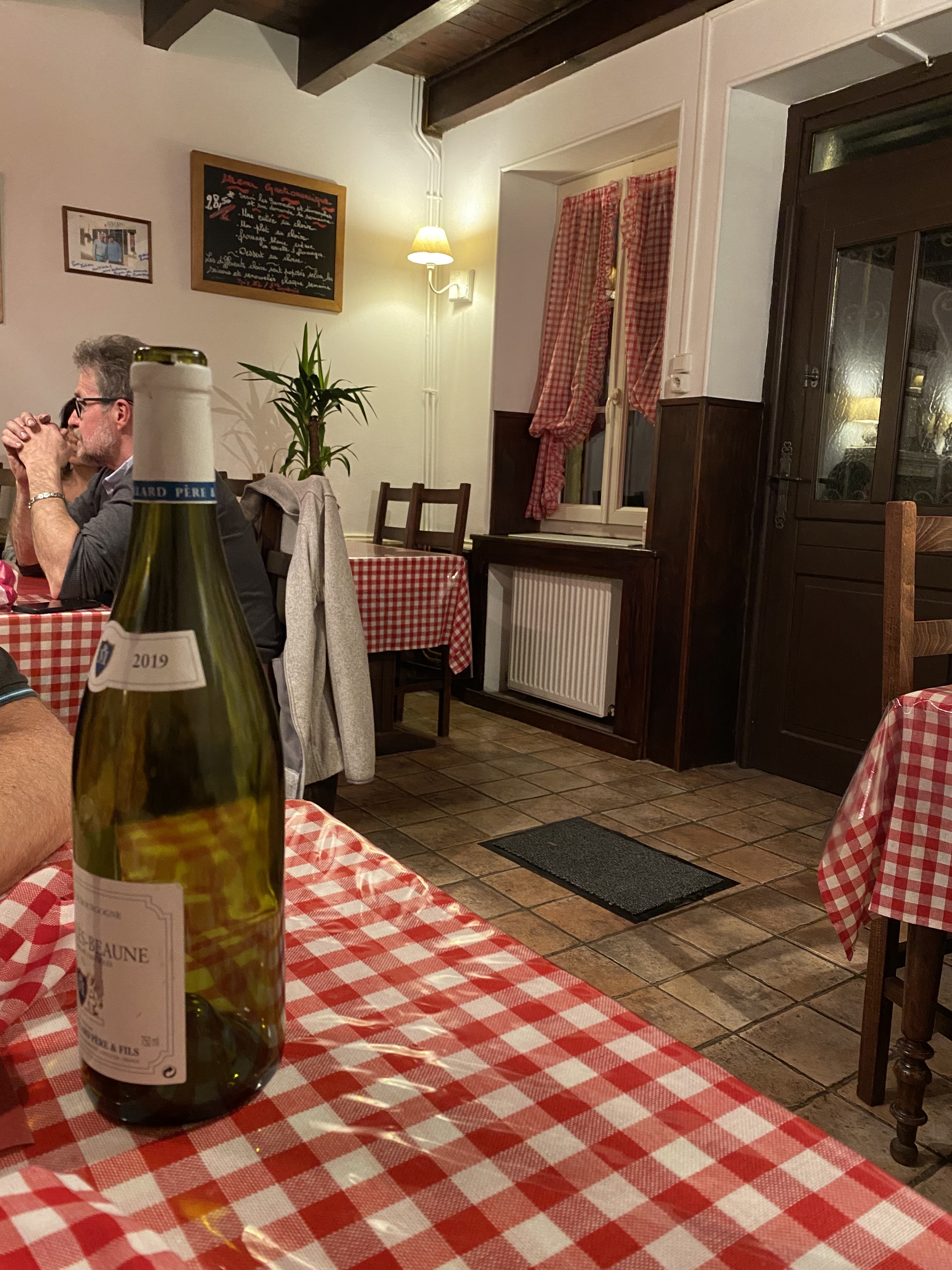 Une très sympathique auberge, nichée dans le petit village de Tintry, dans le Morvan qui ne peut être découverte par hasard sans l'aide d'un GPS ou par le bouche à oreille qui fait que Julien et son épouse n'ont besoin d'aucune autre publicité pour faire salle comble, et ce, depuis 4 générations, dont 20 ans en ce qui les concerne. L'accueil est on ne peut plus sympathique et avenant, la carte (ou plutôt l'ardoise) très courte : 2 menus à 16€ ou 18€ en semaine, et un supplémentaire, gastronomique, à 29,50€ (tarifs 2024) le week-end ou sur réservation, ce qui nous garantit la fraîcheur des produits de cette délicieuse cuisine authentique et sans chichis servie sur la traditionnelle nappe à carreaux rouge et blanche, sous le crépitement d'un feu de cheminée lorsque le temps s'y prête et avec un léger fond musical qui fera le bonheur des amateurs d'accordéon, des fans de Frank Michaël ou des abonnés à Radio Nostalgie. Une jolie adresse à découvrir notamment pour ceux qui veulent y faire une étape gourmande sur le circuit d'une randonnée en prenant le temps de vivre pendant vos vacances. A noter toutefois que si vous souhaitez compléter votre menu par un apéritif maison dont la recette secrète reste bien gardée, par une bouteille de vin en lieu et place du 1/4 de pichet proposé au menu ou remplacer le dessert du jour par le traditionnel crapiau, le prix initial sera ostensiblement majoré ;-)