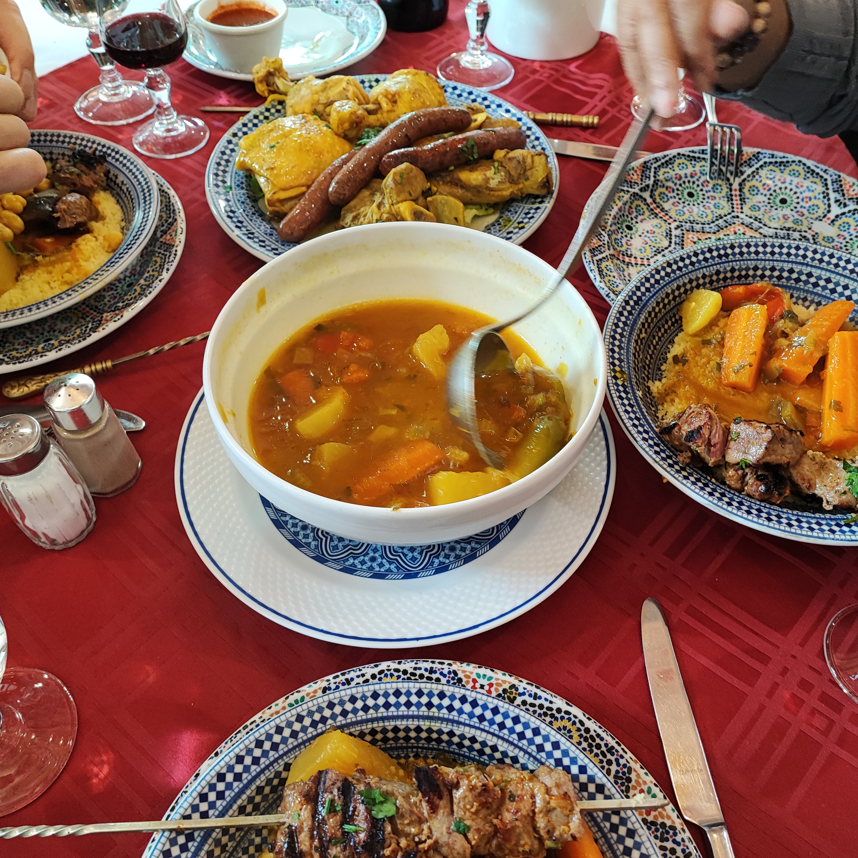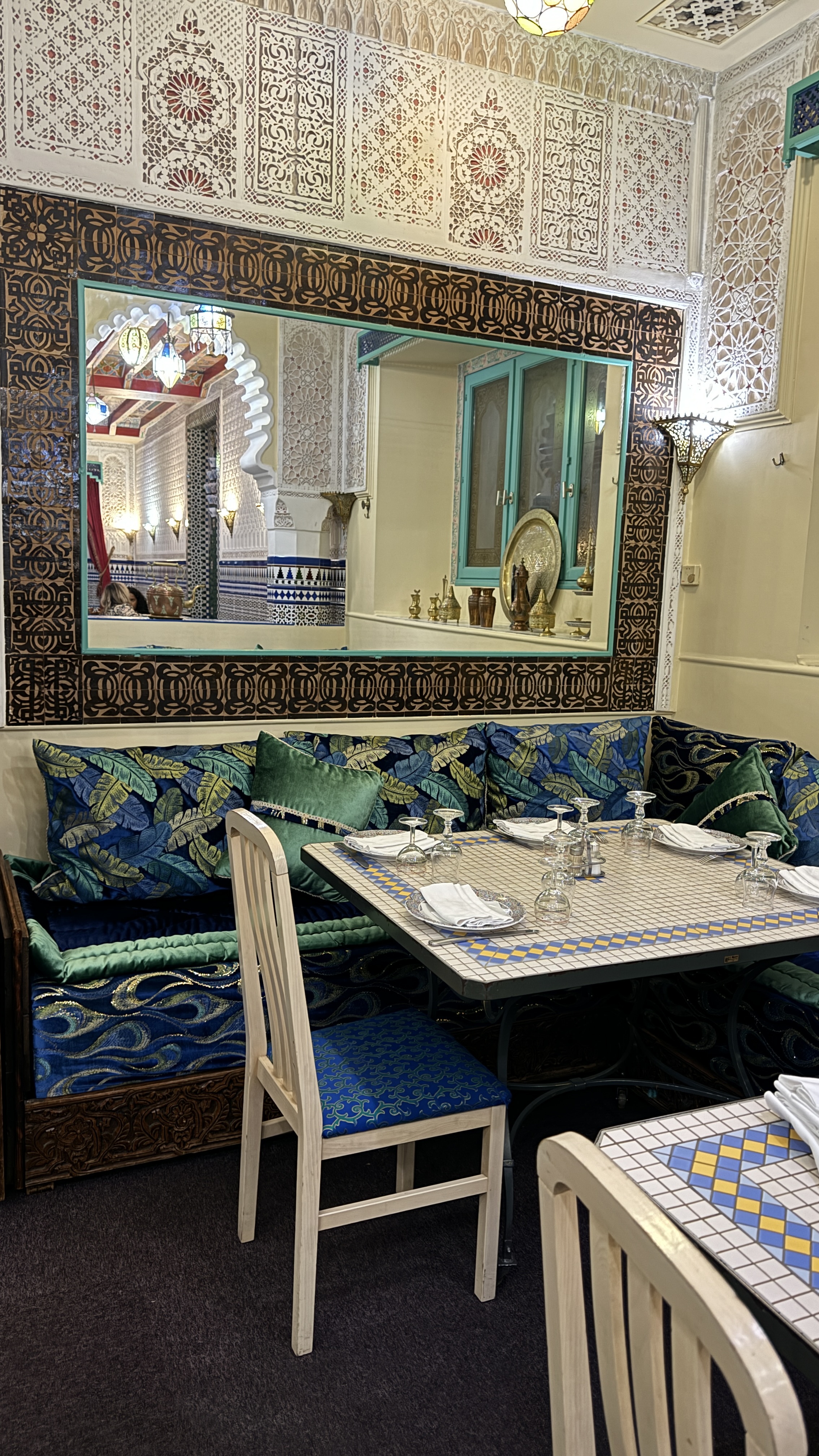 On m'avait parlé de ce restaurant en bien mais je suis déçu. Le couscous est bon mais pas exceptionnel pour le prix . Je trouve qu'il manque d'épices pour donné de la saveur (peut-être que je suis trop habitué au couscous de ma copine marocaine). La serveuse n'est pas très agréable et semble blazer.(peut-être qu'elle a passé une mauvaise journée où est fatigué mais les commentaires sur la serveuse reviennent souvent malheureusement). Par contre la décoration et le service de table est sympa . On se croit vraiment au Maroc.