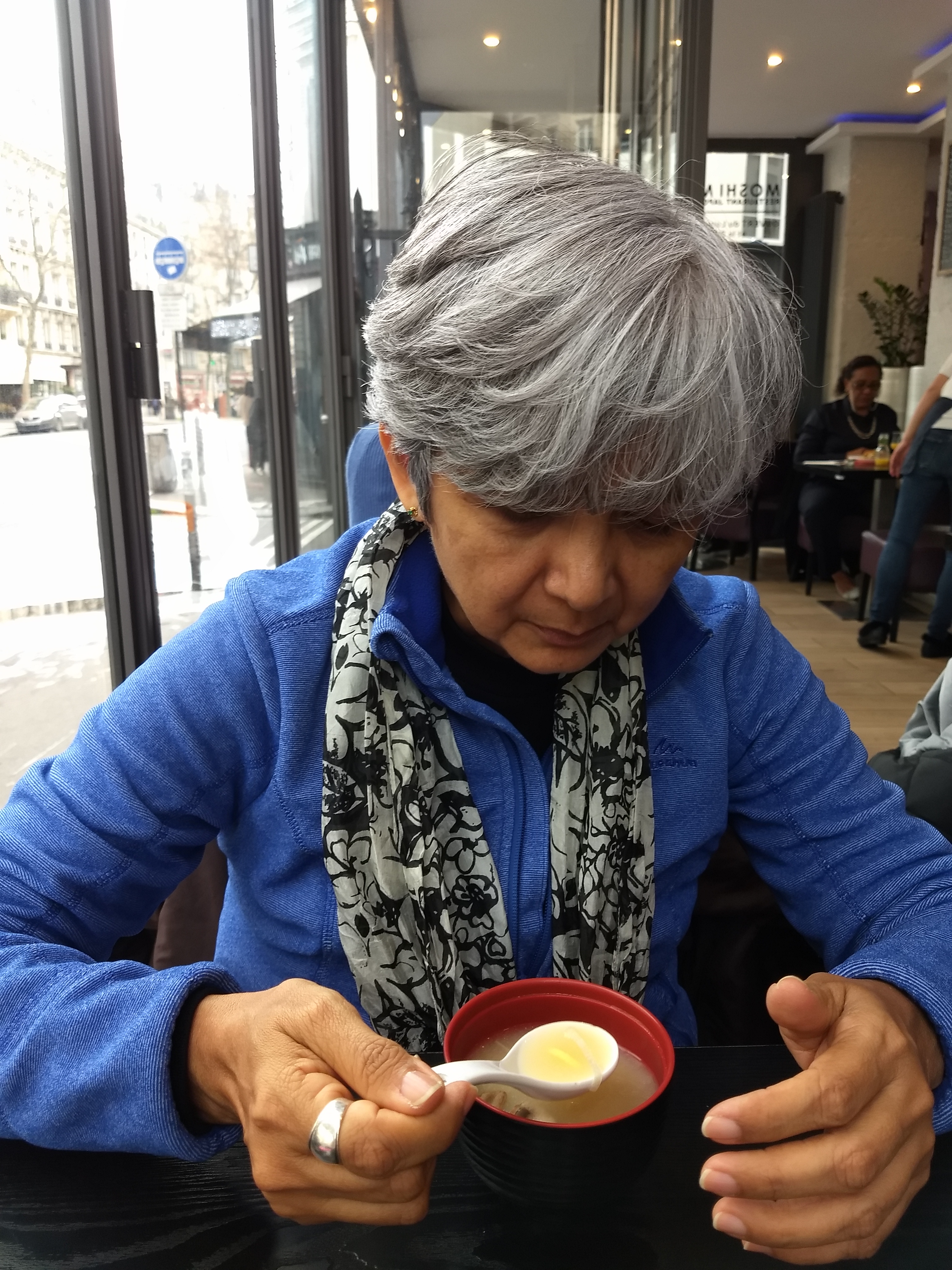 On a pris des mochis très bon, que la serveuse a sorti du congélateur à côté de nous (un peu plus de 11€ les 4 mochis). Le restaurant était occupé par un club de retraités qui jouaient aux cartes. Un peu partout des instructions écrites à la main vous expliquent comment vous comporter dans le restaurant et dans les toilettes. Ils sont dans leur monde ici!