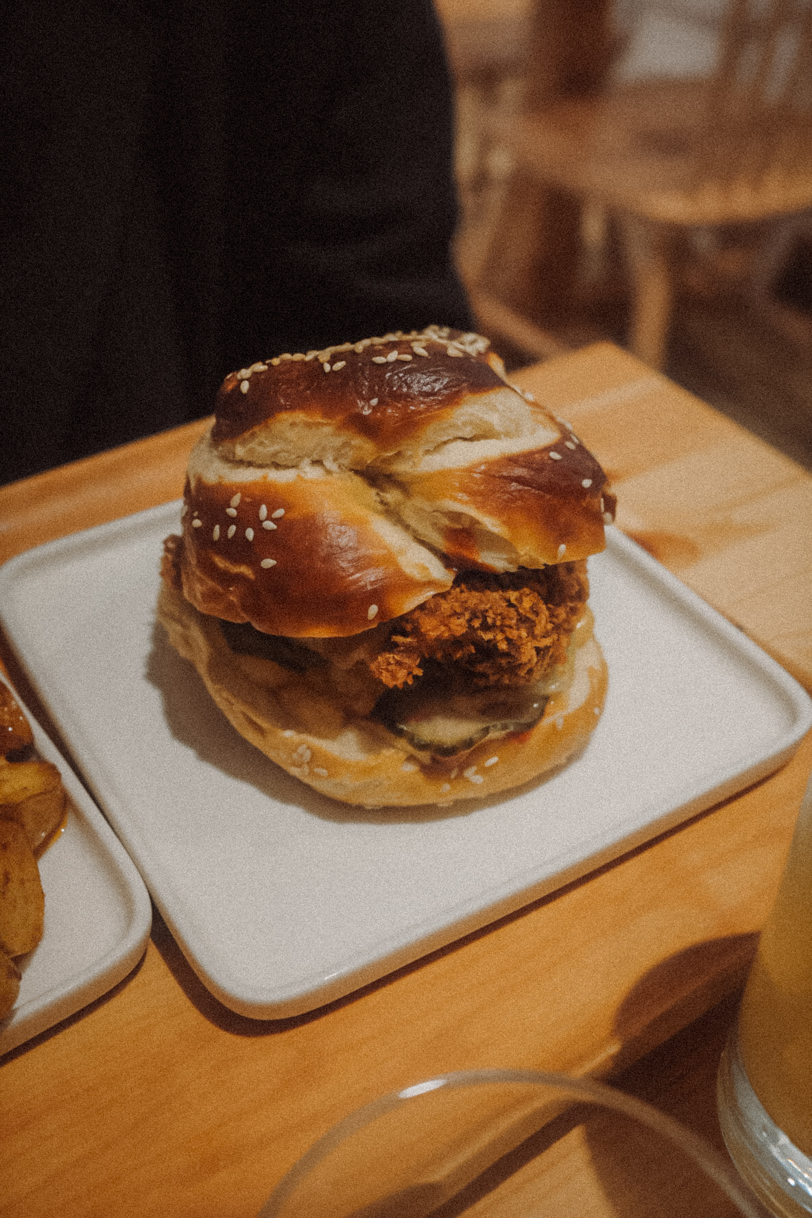 Très beau restaurant spécialisé dans le poulet frit. La carte n’est pas très grande et n’offre pas beaucoup de choix : burger ou poulet frit et frites. Mais les plats sont exécutés à merveille. Le burger était vraiment délicieux et pas gras. Le pain bretzel est excellent et apporte une touche d’originalité au sandwich. Le broookie en dessert est lui aussi incroyable !! Le lieu est très beau, joliment décoré de manière épuré. Le personnel est chaleureux et très gentil. Les prix sont correct pour la qualité des plats. Attention toutefois car le restaurant arrête de servir relativement tôt (21h il me semble).