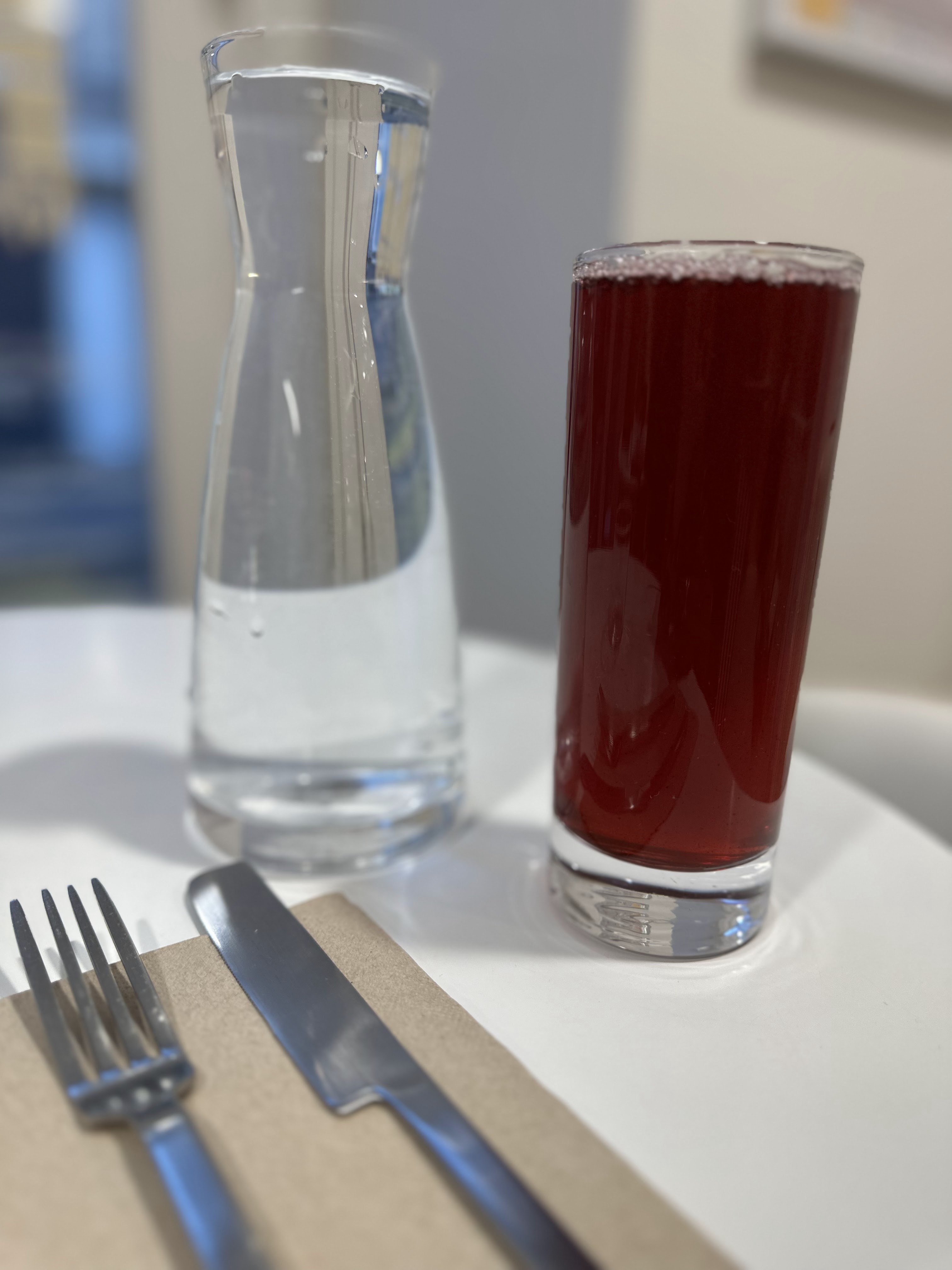 Malgré notre arrivée tardive au midi nous avons été servis et plutôt Rapidement ! Tout cela avec le sourire 😏 Le menu .. que dire ?! Juste parfait ! Une quantité suffisante pour une agréable surprise ♥️ Et ce jus de bissap ... Une véritable découverte :) Je recommande les yeux fermés !