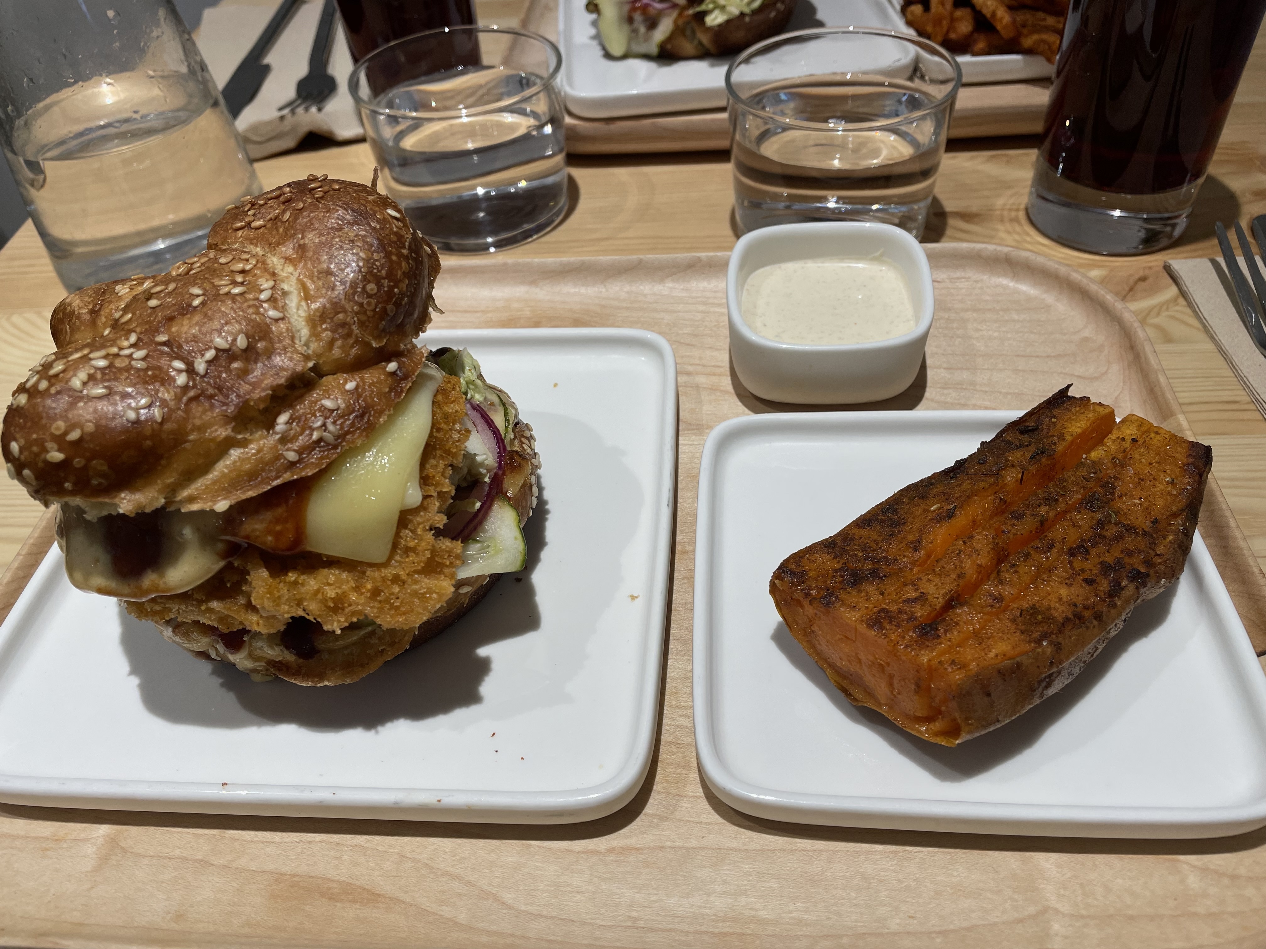 Si vous chercher un bon burger avec des bons produits et surtout très copieux, vous êtes tombés au bon endroit. J’ai choisi le Burger poulet avec le pain bretzel, perso j’ai trouvé ça super bon. J’ai pris en side des frites de patate douce, très bonne également.