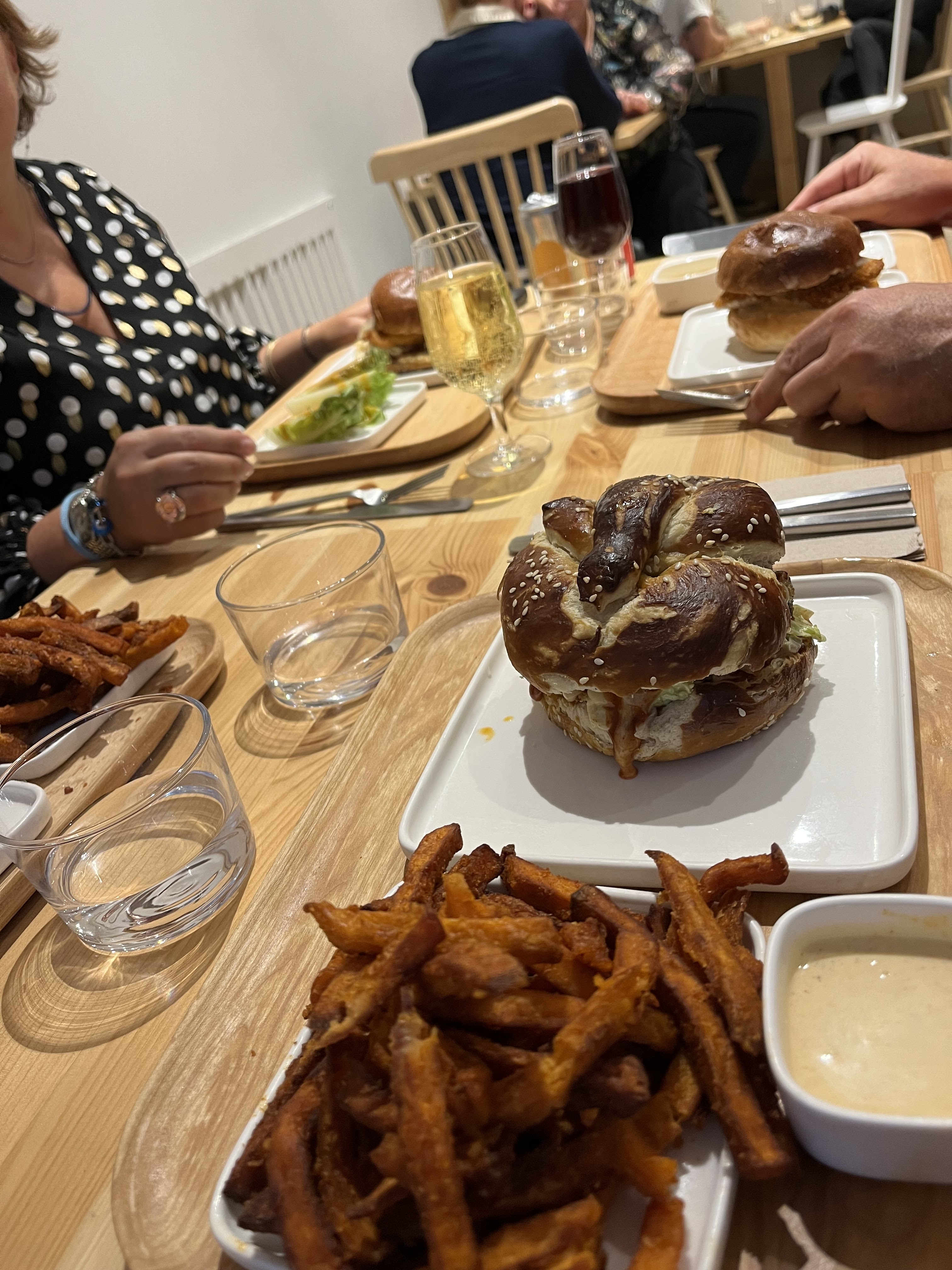 Nous y avons dîné ce soir à l’occasion d’un anniversaire et on a adoré ! La carte n’est pas très longue, il y a peu de choix mais les burgers sont très appétissants, avec deux sortes de pain différents (bretzel et bun). J’ai pour ma part choisi celui à la courgette frite et au concombre (donc végétarien) qui était succulent. Le reste de ma famille a opté pour ceux au poulet et ont un retour tout aussi bon sur leurs burgers. En accompagnement les frites de patates douces étaient excellentes aussi bien que la patate douce rôti et la sucrine. Je recommande donc vivement ce restaurant ! Et je pense que nous reviendrons avec plaisir.