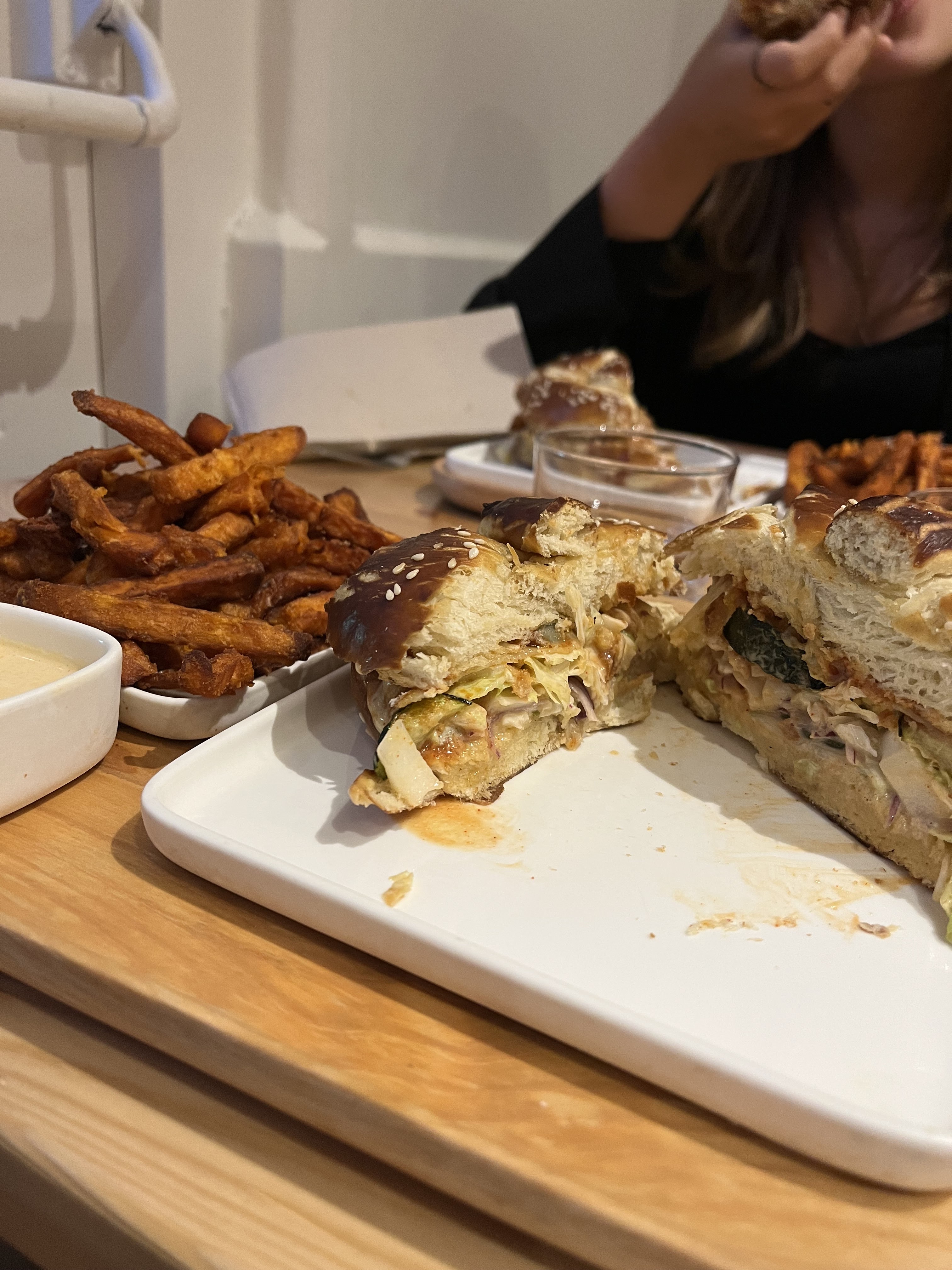Des frites de patates douces exquises, un burger gourmand sans être trop lourd, un cadre résolument chaleureux et intimiste, et une serveuse qui garde le sourire même dans les périodes de rush. Tout ceci m’a fait repartir, après avoir dîné sur place, avec une seconde commande à emporter. À recommander sans hésitation !