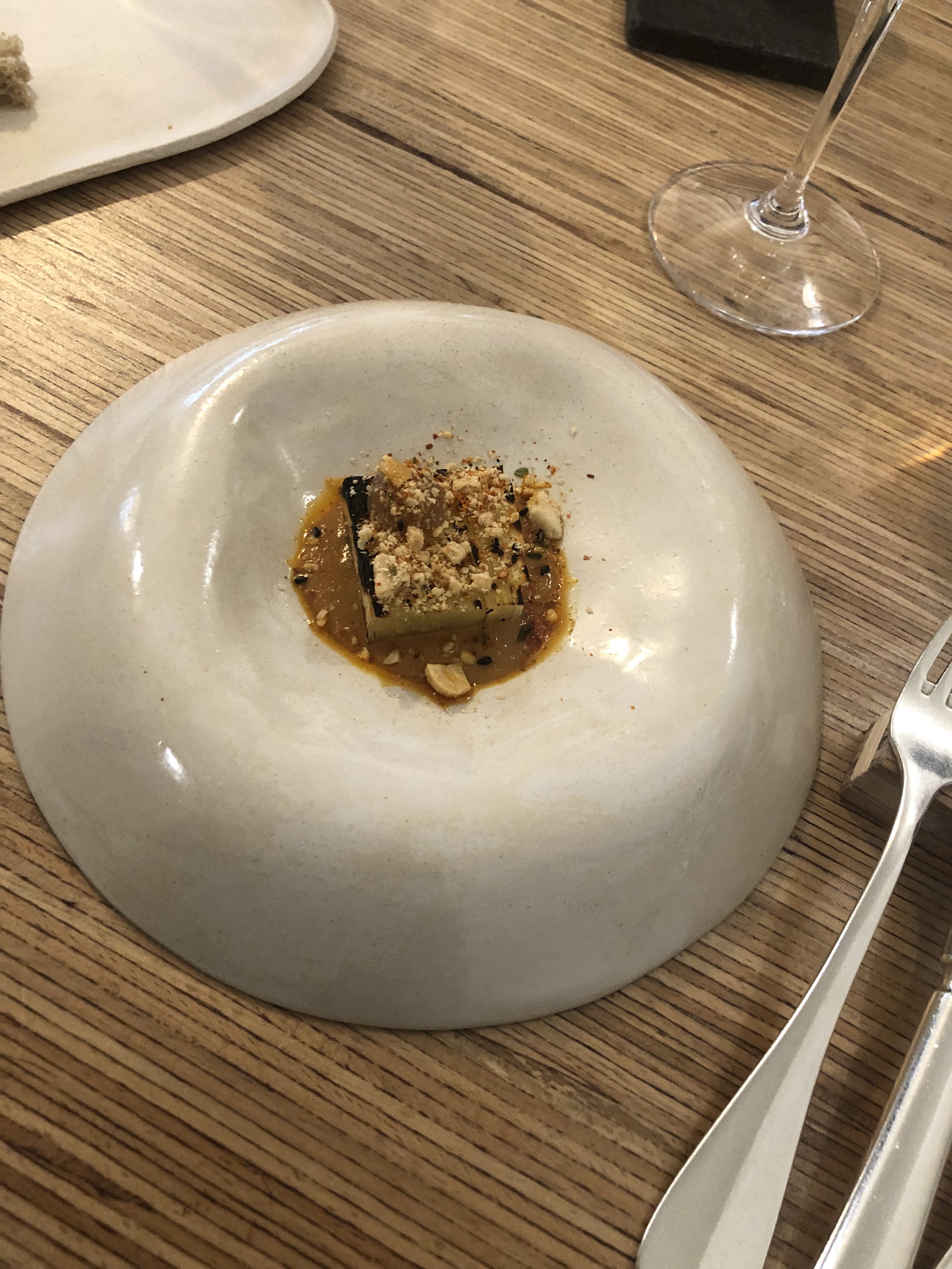 Petit restaurant très cosy. Accueil cordial mais manque de sourire de certains serveurs c'est dommage. Malgré cela, un service maîtrisé et agréable. Nous avons été débarrassé alors que nous étions encore en train de manger sur 1 service, cela peut paraître déstabilisant. Voyage culinaire très intéressant avec des saveurs asiatiques puis africaines. Le tout très juste et équilibré. Le chef est venu nous voir pour le dessert, nous avons pu échanger quelques mots c'est très appréciable. En résumé malgré quelques détails à améliorer, excellent restaurant, à recommander !
