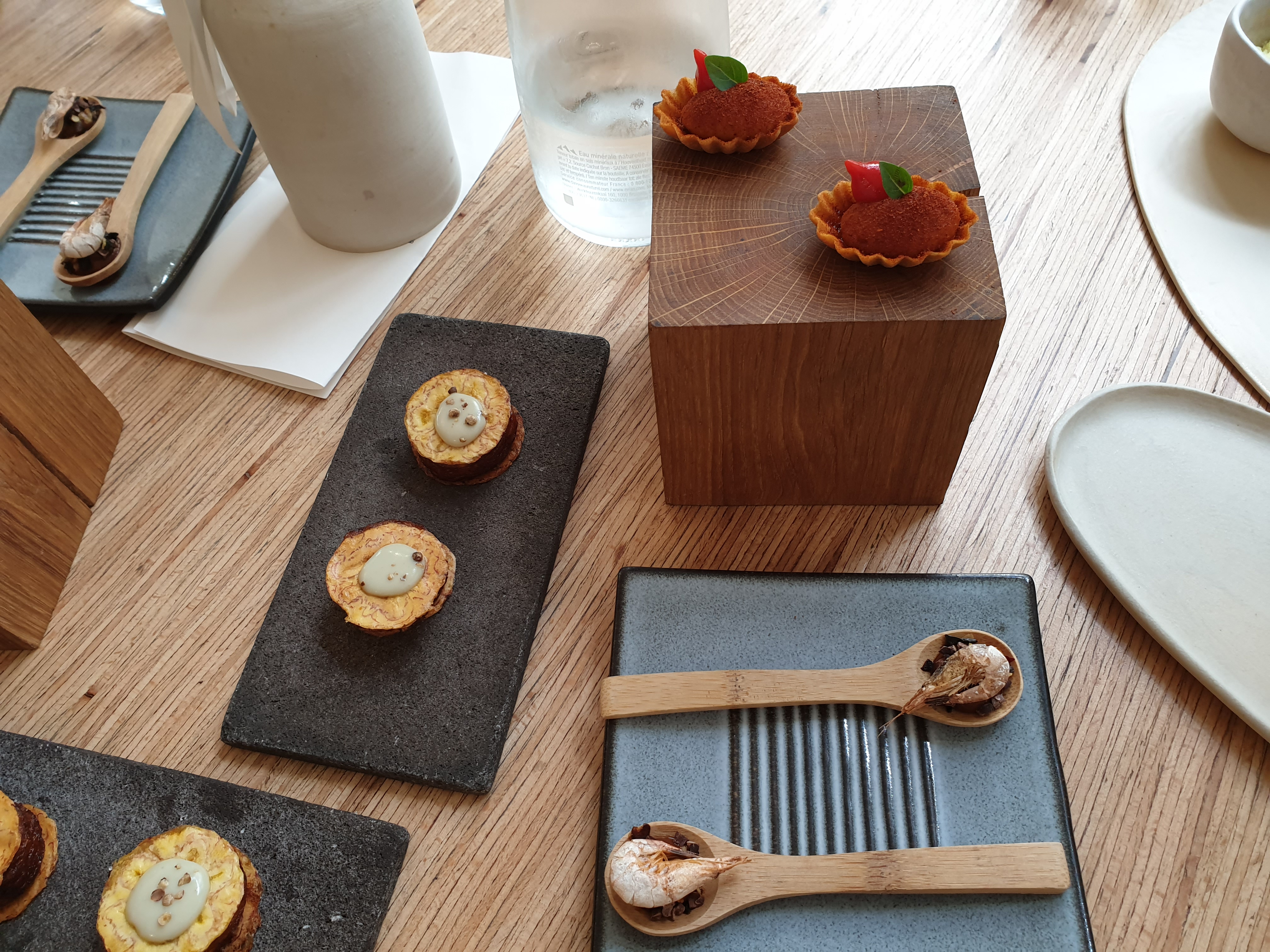 Merveilleux voyage culinaire. J'y étais aujourd'hui,une belle et savoureuse parenthèse de saveurs, des associations étonnantes et d'étonnantes...j'ai l habitude des restaurants et des voyages mais j ai vraiment été séduite par des sensations nouvelles et inattendues,en plus le chef a eu la gentillesse de venir me parler. Mention spéciale au service. Merci pour cette découverte 🙂