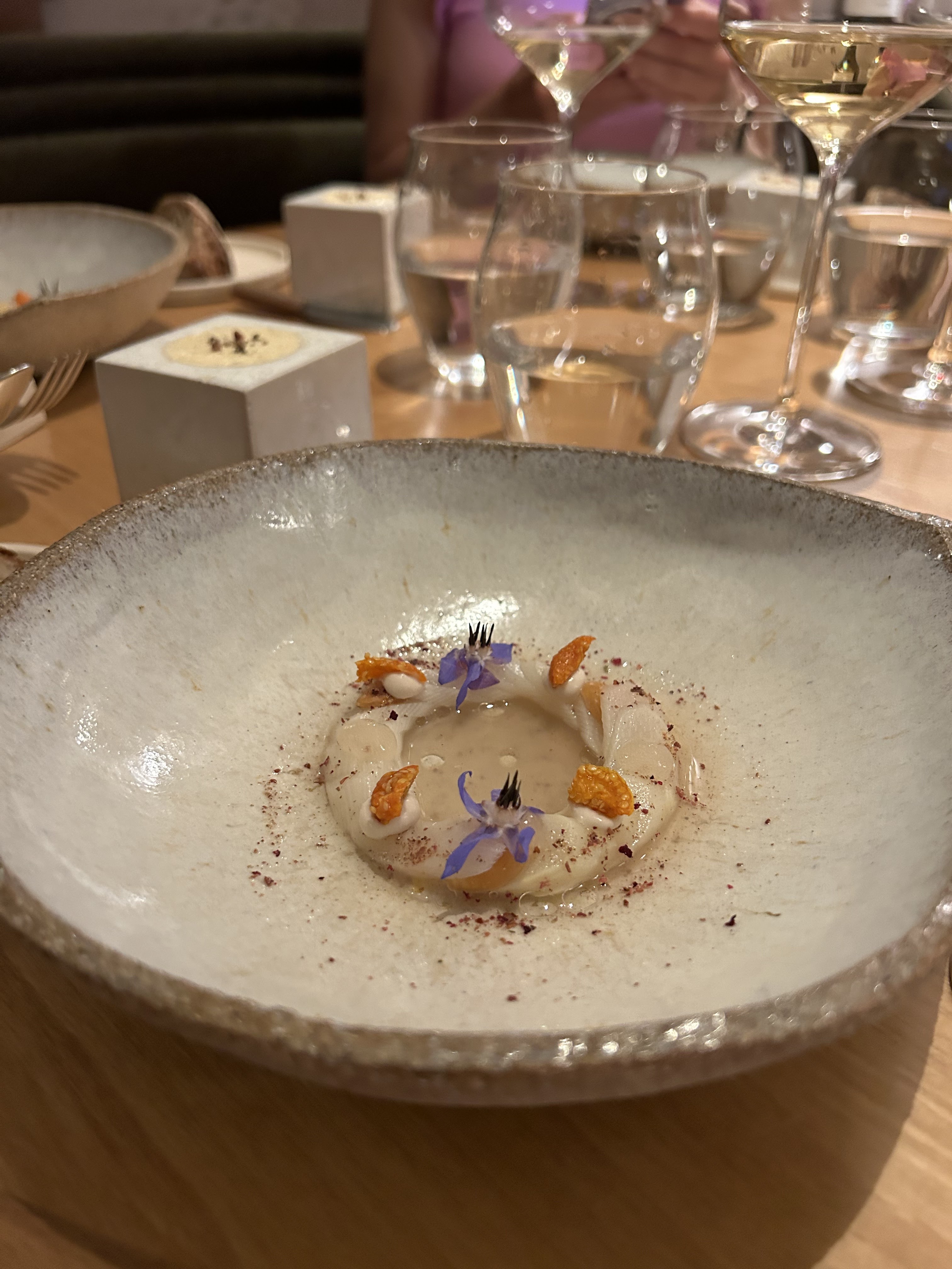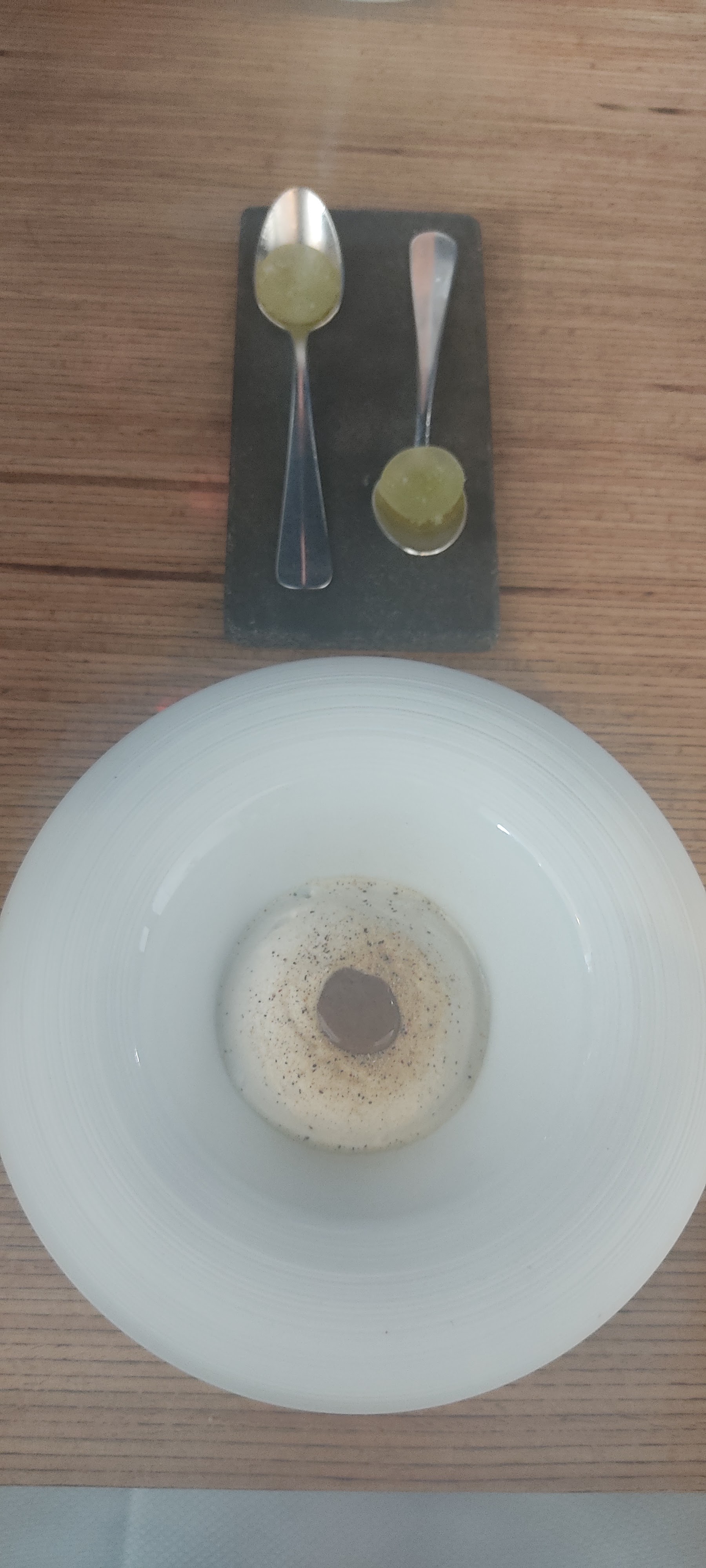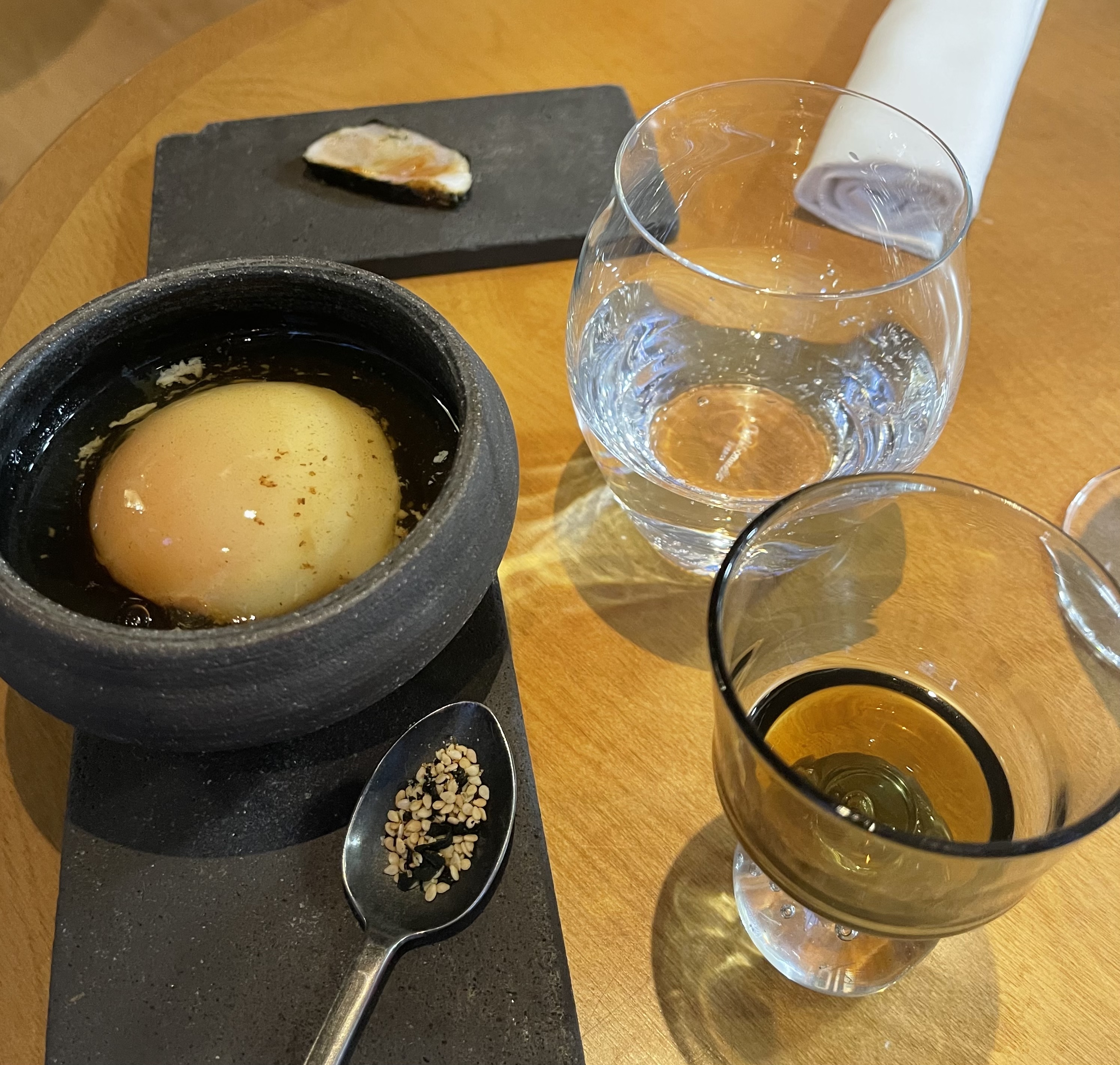 Nous avons passé un déjeuné extraordinaire pour un événement familiale important. l’expérience était au delà de nos attentes. Merci au chef pour la discussion en fin de repas. Je ne mets qu’une photo car je trouve les surprises du déroulement du menu plus intéressant. On a tous adorés. Et pourtant, certains n’aimaient pas le poisson cru ou certaines épisses. Seul anicroche, ce petit flottement où on a peut être pas eu la bonne info dans l’ordre de dégustation. Mais le rythme du service est comme une chorégraphie. Manque peut être quelques sourires. Cela n’empêchant ma très forte envie d’y retourner.