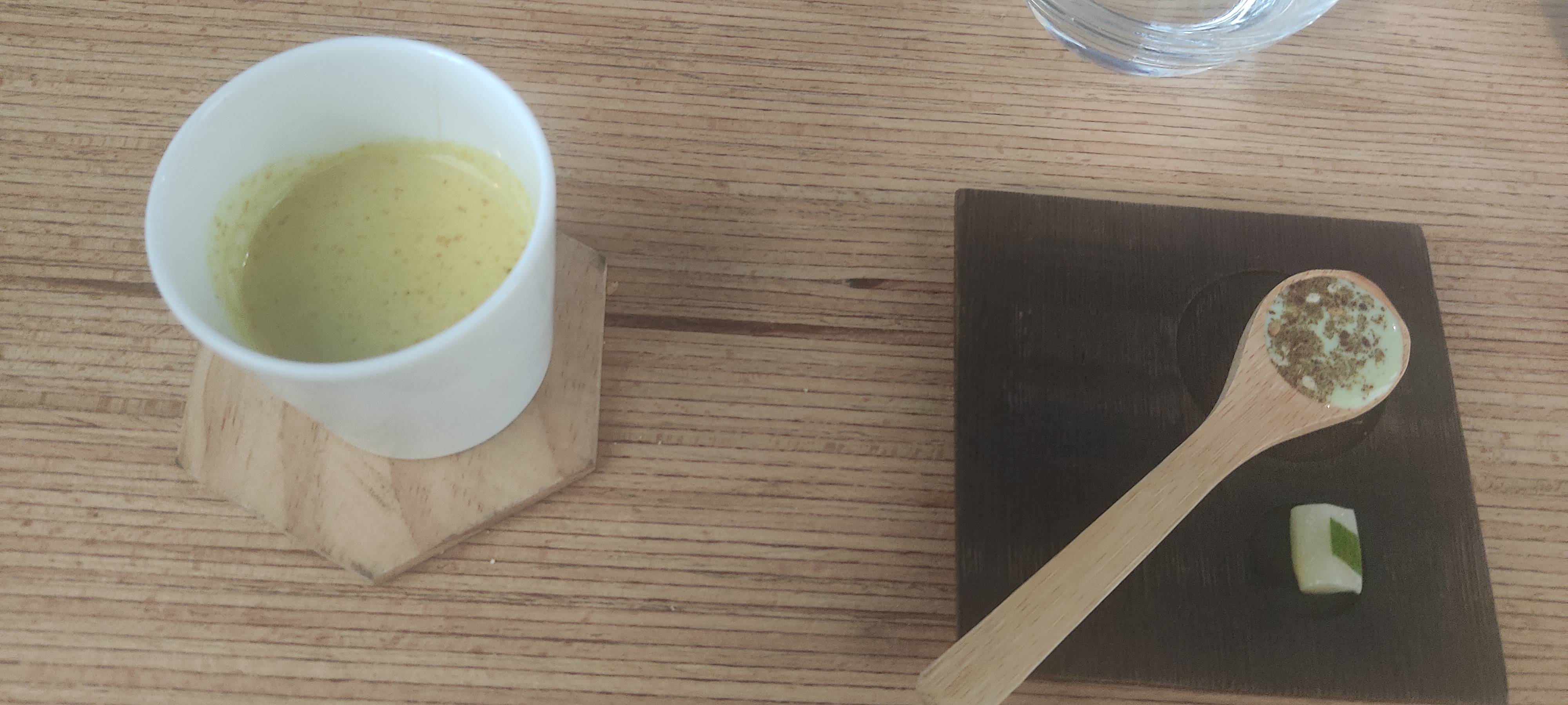 Un moment délicieux à plus d’un titre. Beau voyage qui réveille les papilles. Petit bémol : la Pèpè Soup était difficile à terminer, vu la brique rectangulaire et la cuillère ovale :)