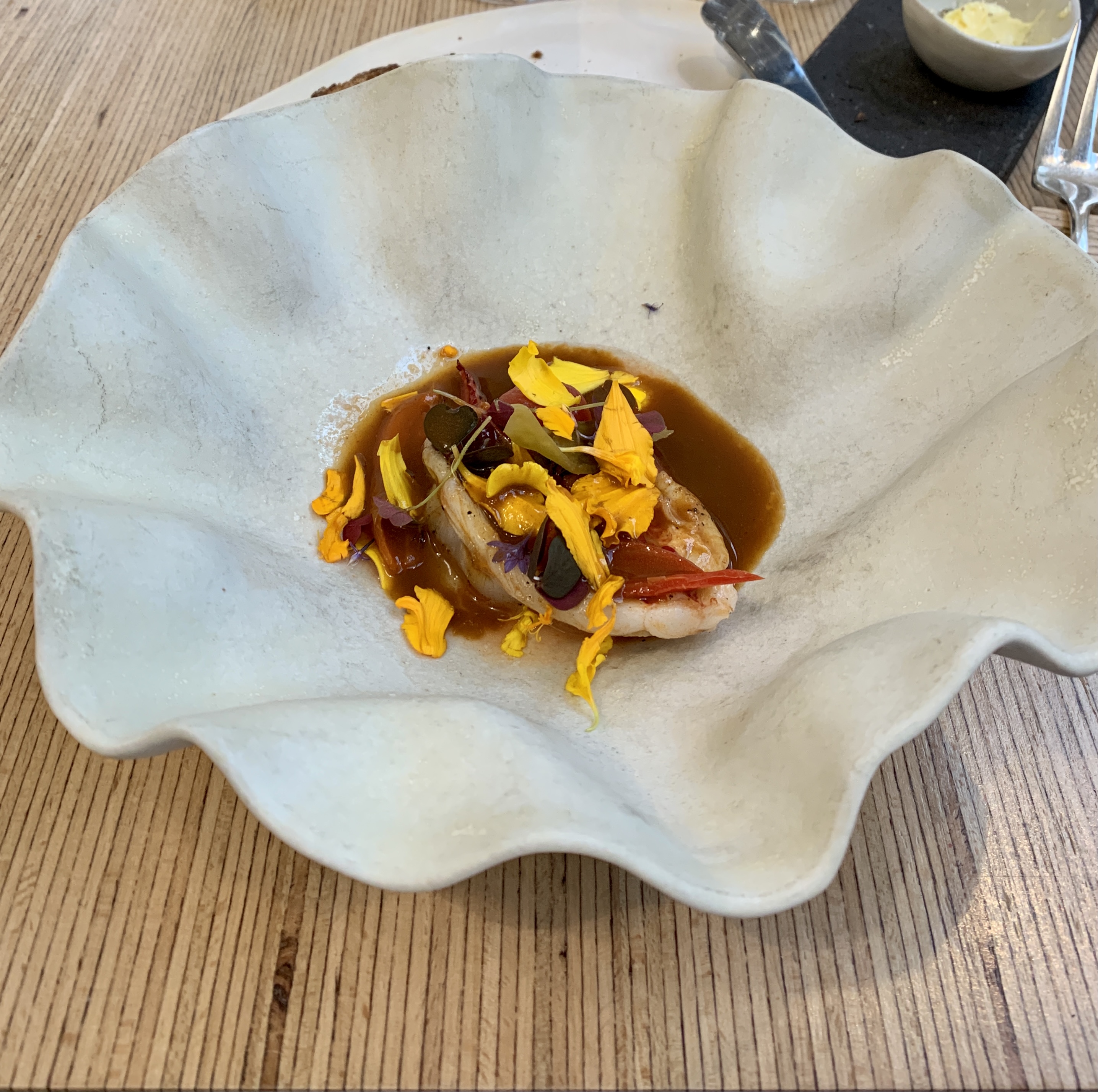 L'expérience au global a été plutôt décevante au vu des avis très positifs lus vant de nous y rendre. Certes il s'agit d'un restaurant gastronomique avec des mariages de sauveurs intéressants mais notre palais ne nous a pas fait palpiter. Nous avons trouvé que l'influence asiatique prenait le dessus sur le reste des plats très peu garnis. Il y une belle vaisselle dans un décor très épuré un peu trop à notre goût trop de lumière blanche. Peut être que l'expérience vaut plus le détour le soir et non pour le déjeuner. Le personnel est accueillant et le sommelier de bon conseil. Réservation obligatoire bien évidemment.