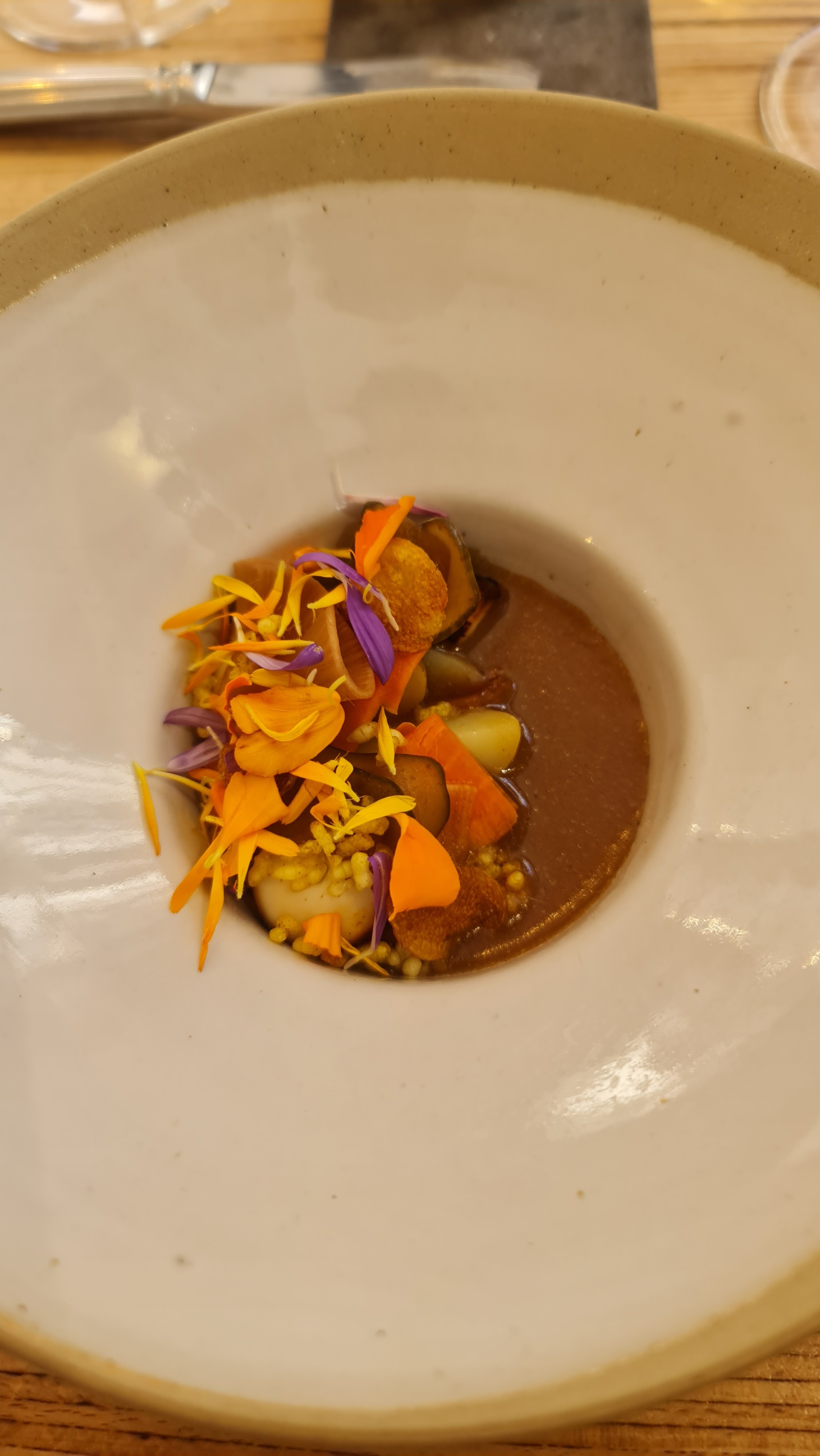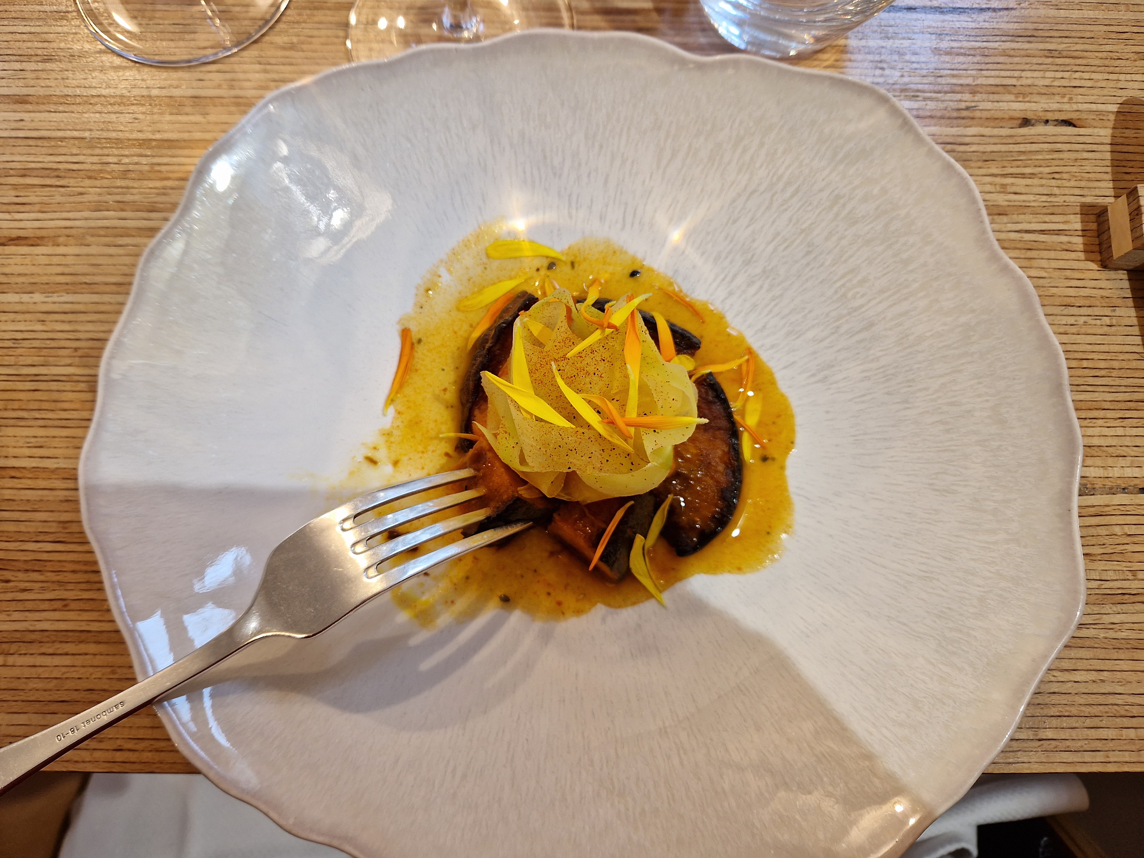 Exceptionnel ! Un véritable voyage gustatif. Des plats avec des saveurs incroyables. Un vrai régal ! La décoration du restaurant est elle aussi parfaite, tout comme le service. Très heureuse d'avoir pu échanger quelques mots avec le chef !!