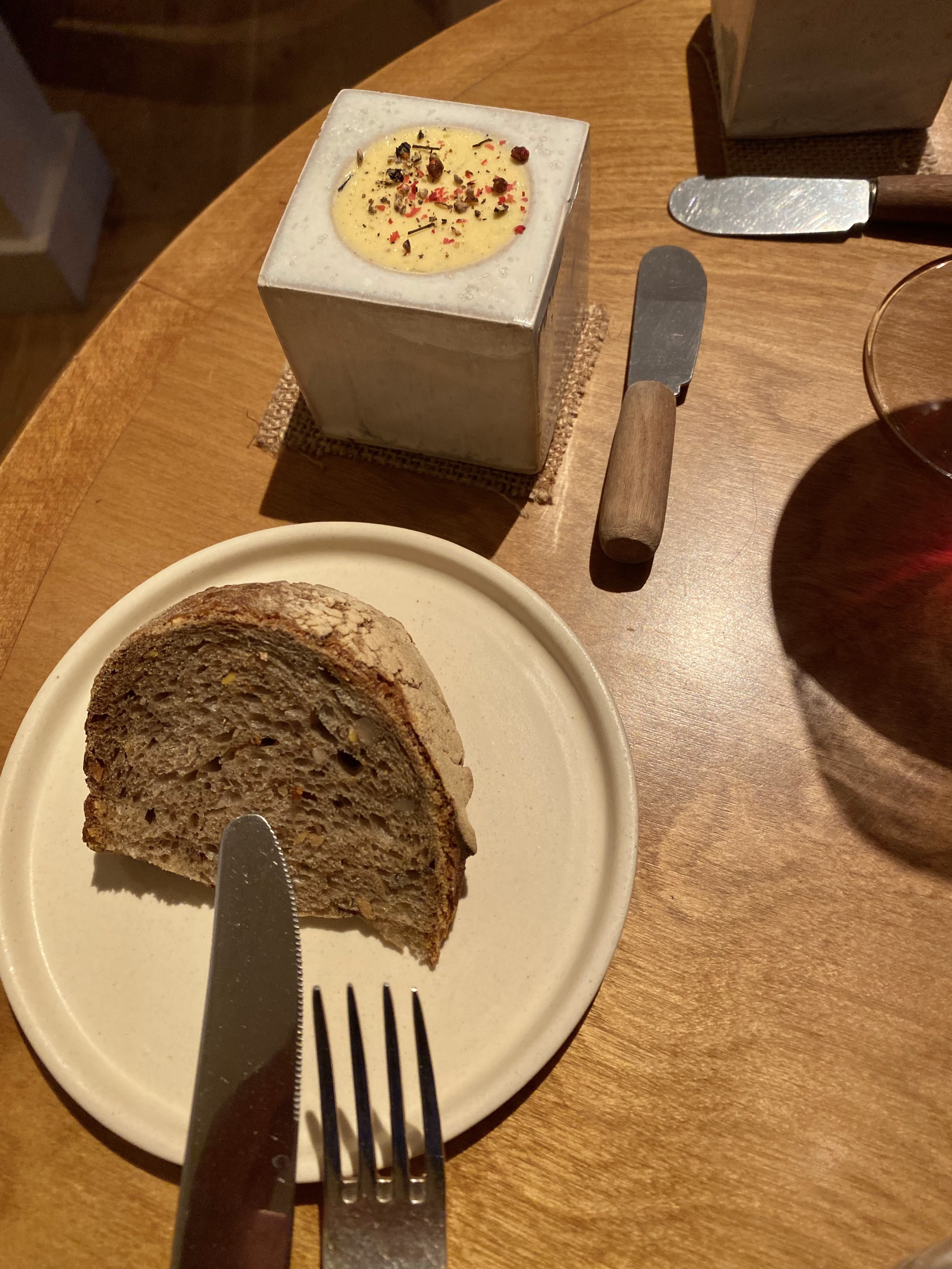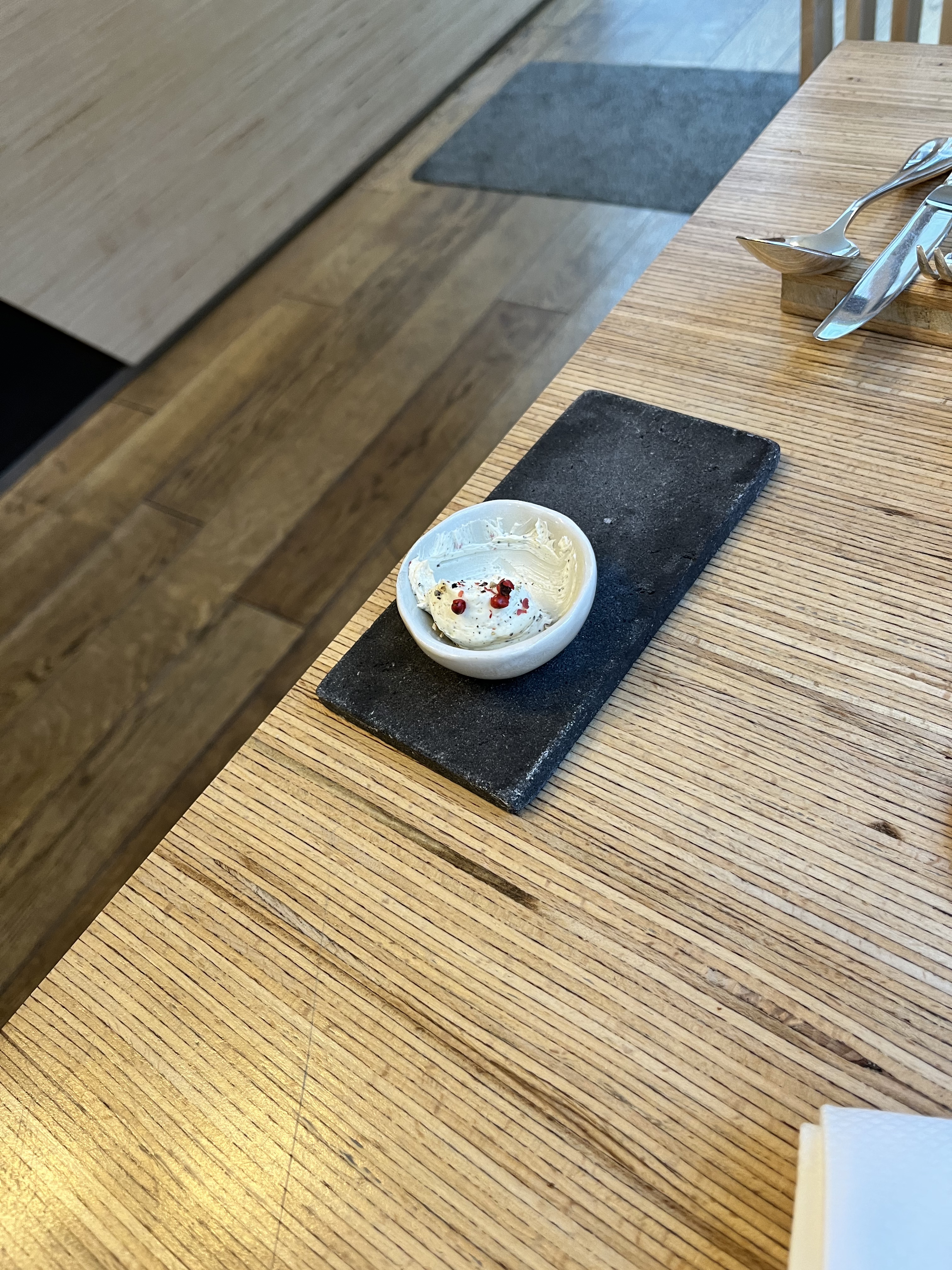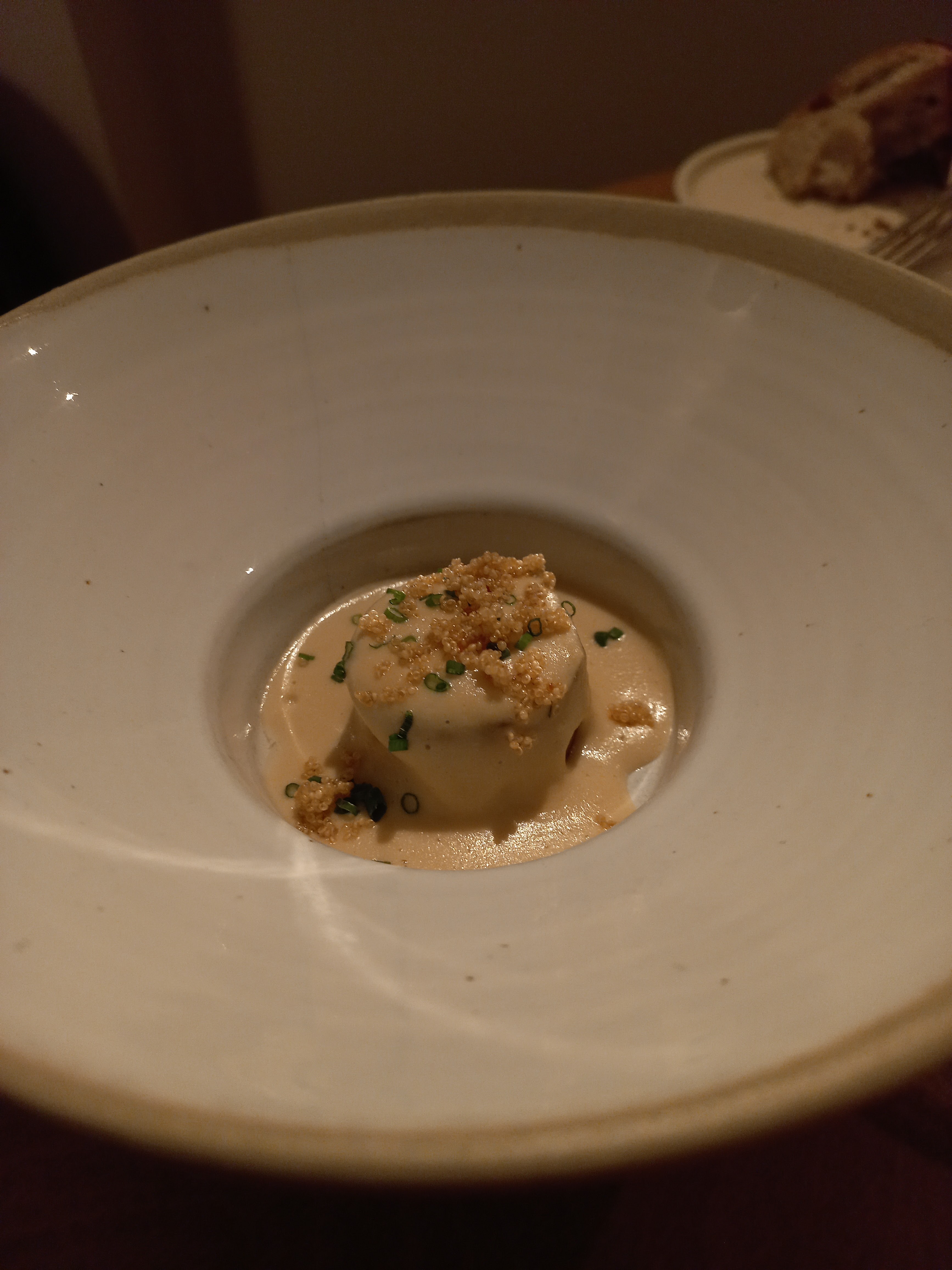 Superbe cuisine, mais très dommage que la table que nous avions, celle au bout du restaurant, ait été dans un courant d’air froid, en permanence. Nous avons dû manger avec nos manteaux, et j’avais les pieds gelés pendant tout le repas. Le confort, c’est important pour savourer.
