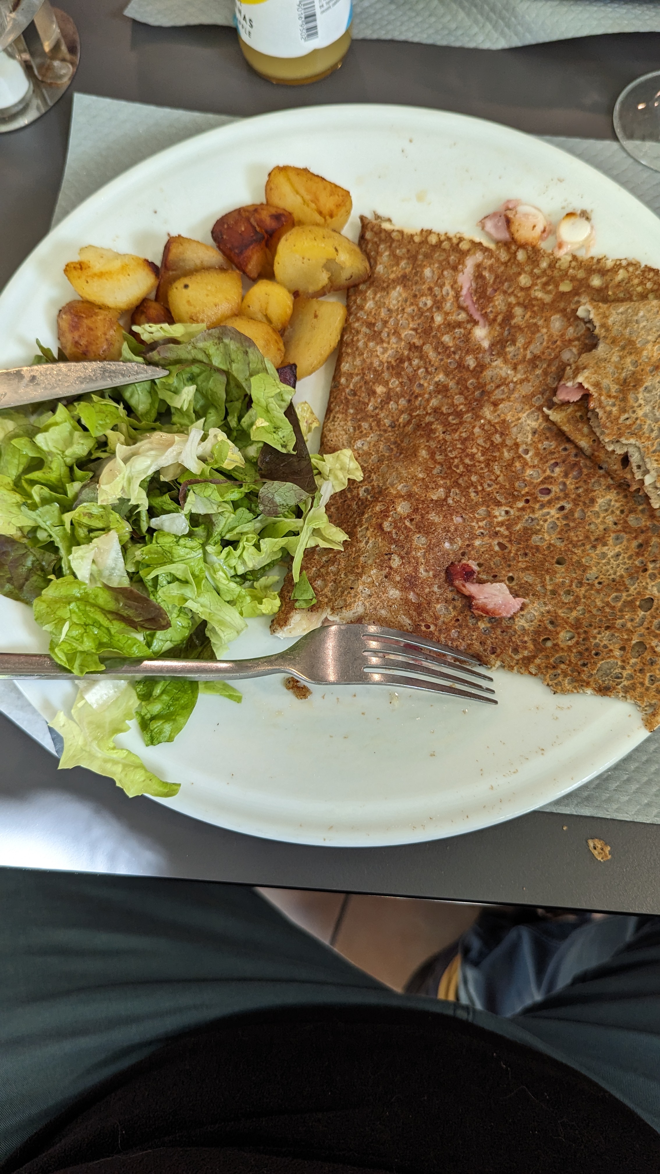 Moyen moyen. Service sympathique mais sans plus. Galettes ok avec très bonne pommes de terre sautées. Crêpes froment tiédasses et molles. Pas super dommage