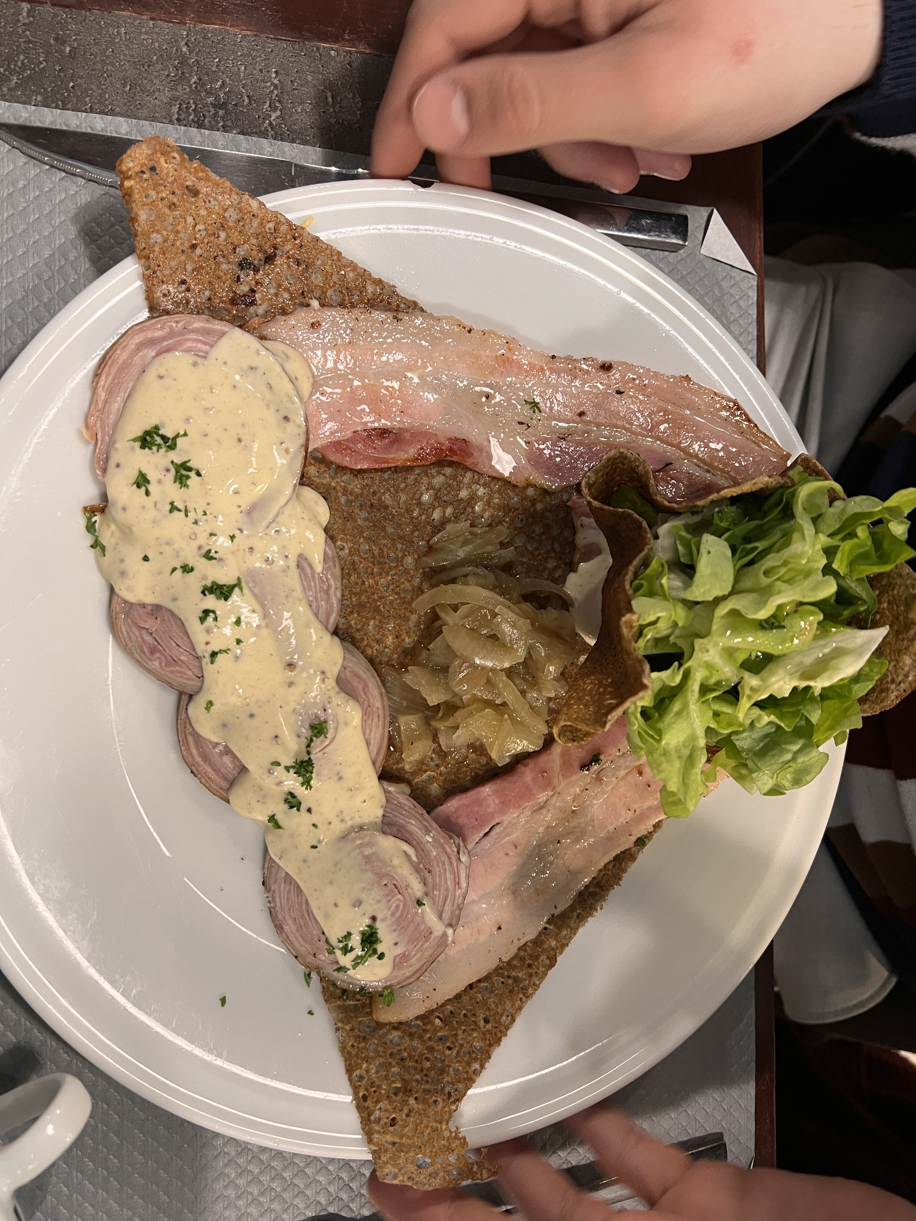 Arrivée au dernier moment dans une période de sous effectif, j'ai été reçue avec le sourire et ai pu déguster une galette avec un confit de filet mignon de porc juste à tomber, et une kouign crêpe en dessert, une spécialité gourmande à recommander. Merci !