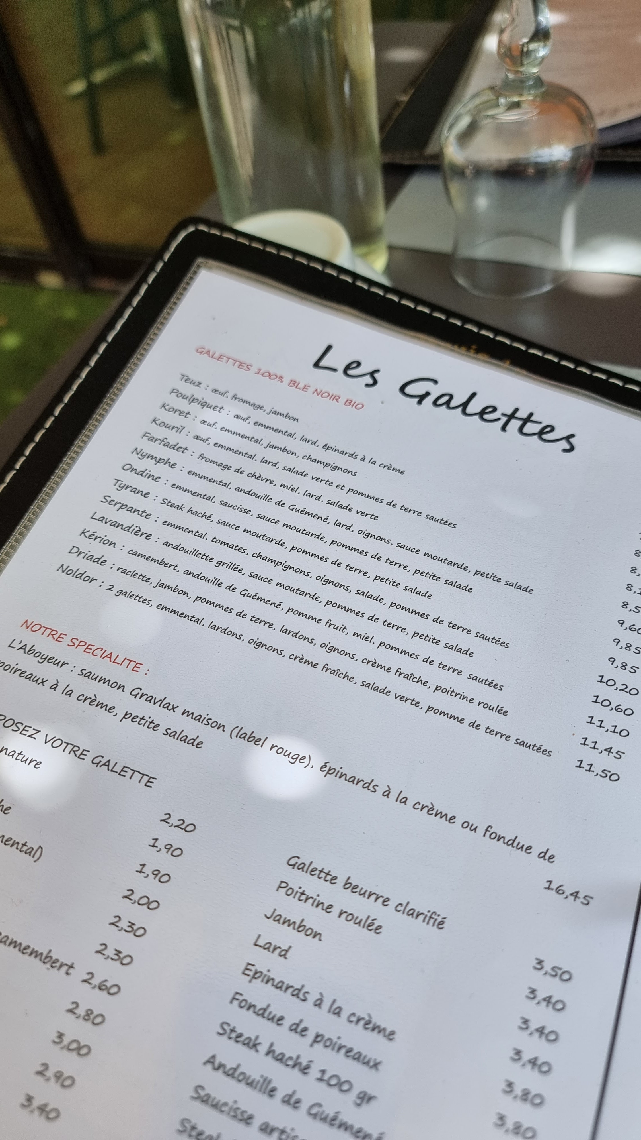 Cadre superbe, personnel très accueillant, les galettes et crêpes sont très bonnes (possibilité de composition soi même), pas mal de choix de cidres, en terrasse à l'ombre ou au soleil je recommande vivement 😃
