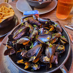 Nourriture très bonne (moules marinières, crème fraiche, chorizo & roquefort 😋) Cependant, ayant réservé pour 9 à 12h30, on nous annonce qu'il n'y a plus de menus disponibles car plus d'entrées et seulement 1 fish and chips restant.. Un peu déçus !