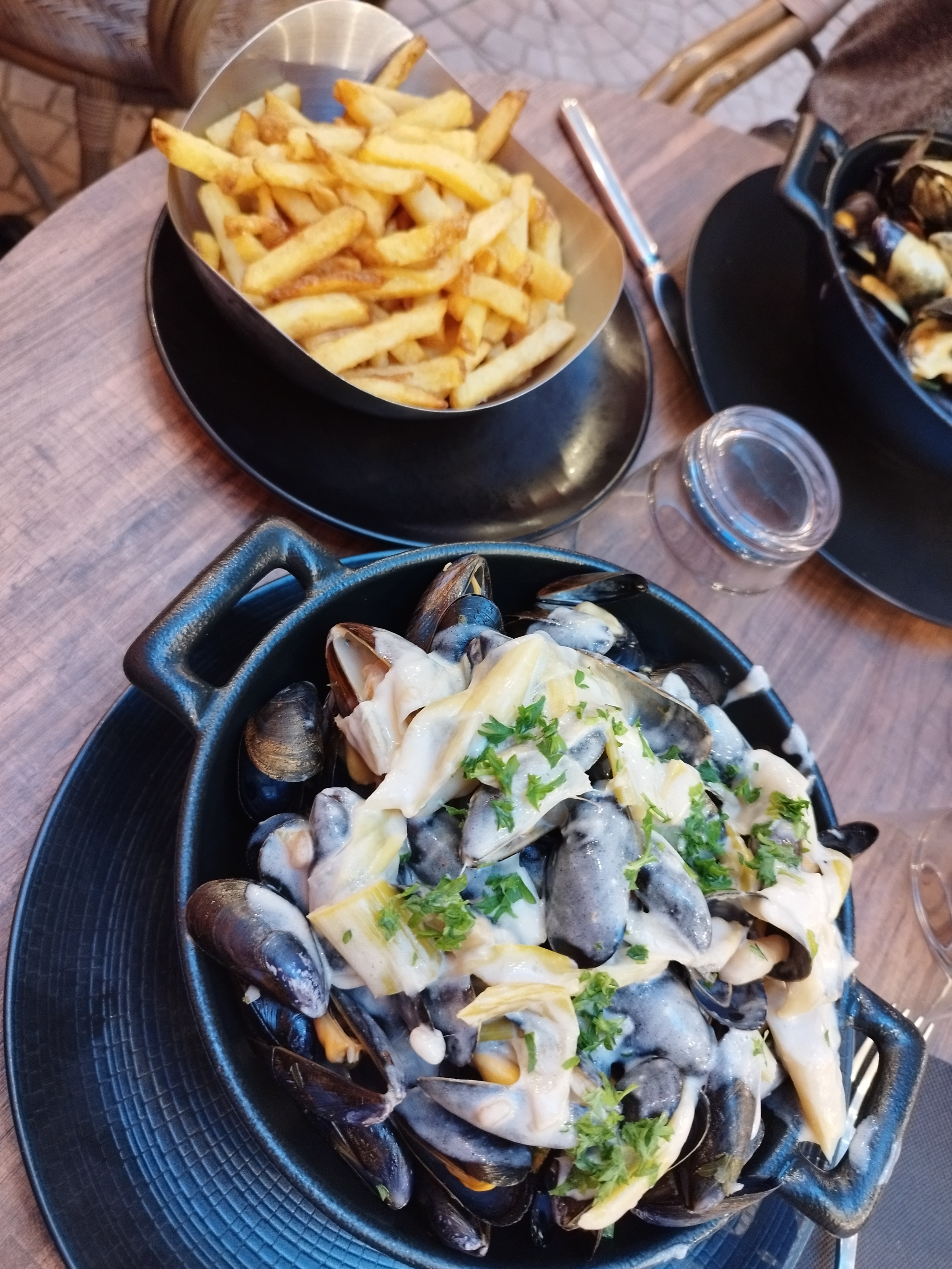 Les moules étaient très bonnes et la terrasse au fond agréable. Par contre, le service laisse à désirer: nous arrivons en fin de service avec ma compagne, le restaurant est en train de se vider, mais le serveur refuse que nous commandions une cocotte de moules à partager, et nous demande de commander un plat chacun. Les frites sont molles et saturées d'une huile plus très fraîche.