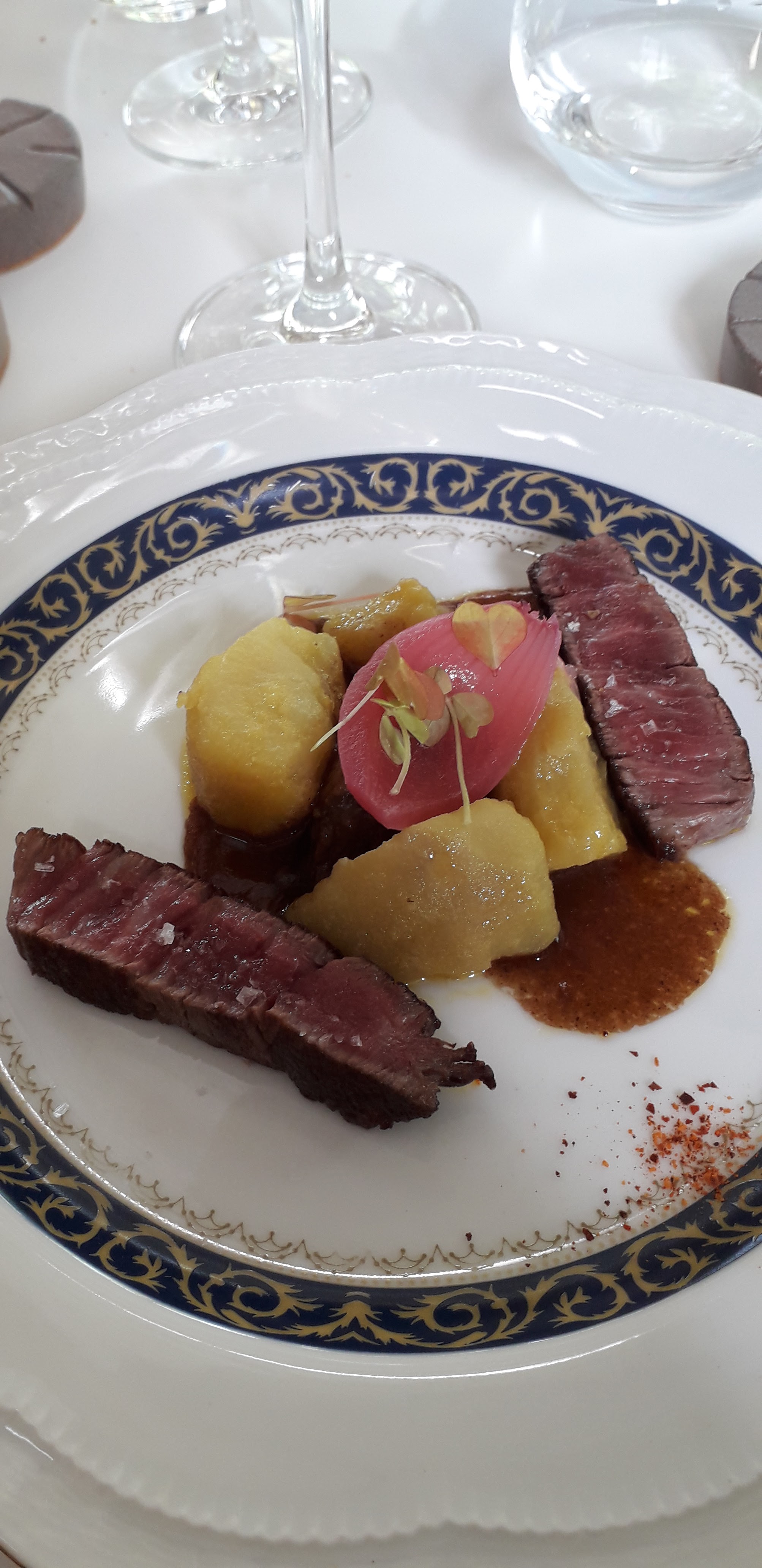 Deuxième expérience dans ce magnifique restaurant. Menu préparé selon mes restrictions ( végétarienne et sans gluten ) absolument merveilleux. J ai l habitude de tables étoilées mais celle ci mets la barre vraiment très haut. Bravo au chef pour la finesse, l originalité et la conception de chaque plat, très fleuris ce mois. Un vrai moment de magie visuelle et gustative. Merci