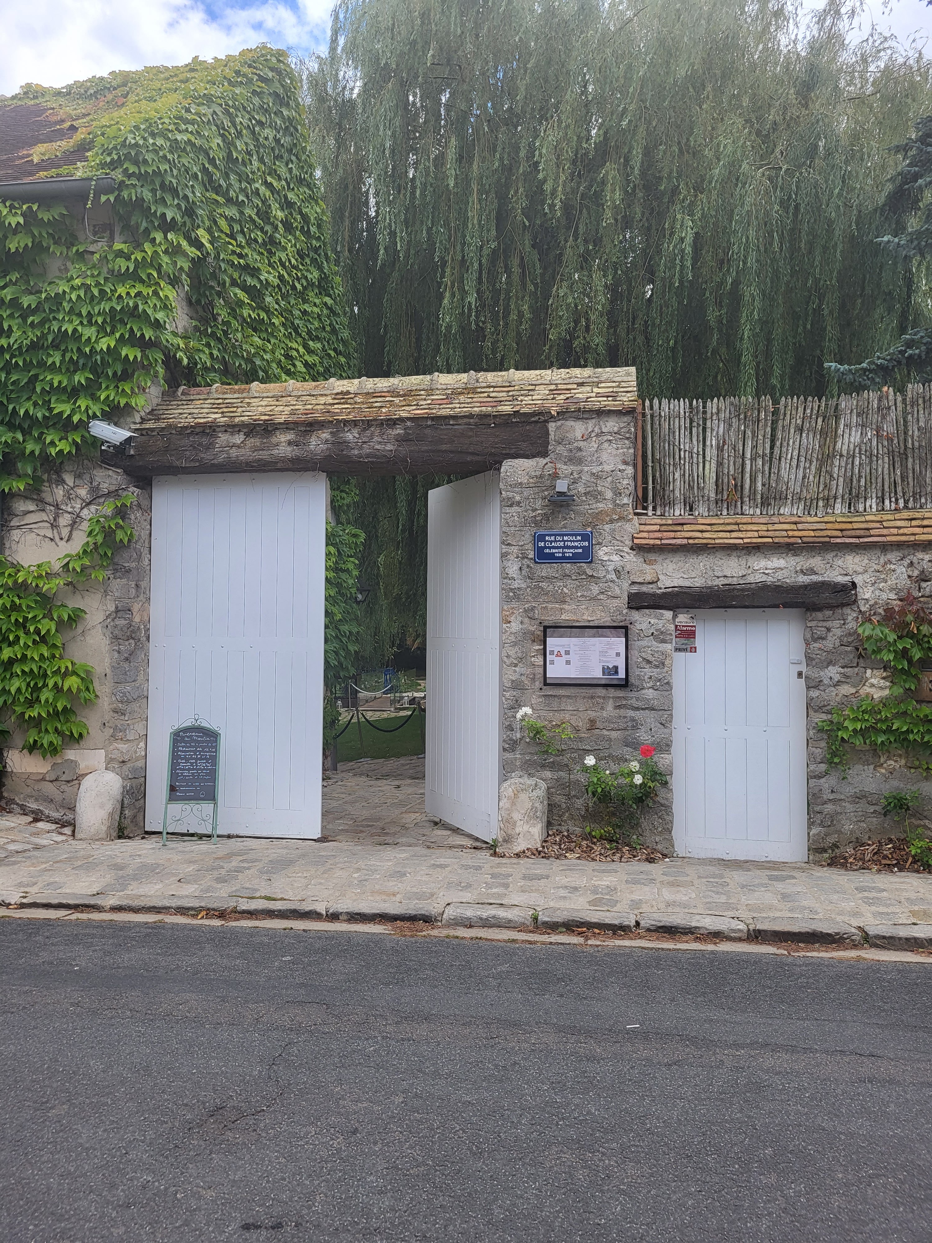 Cela faisait longtemps que je m'étais promis de venir fêter dans ce lieu mythique un de mes anniversaires. Le temps fut venu en juillet 2023 pour mes deux fois trente ans. Très ému sur le pas de portail, je franchissais le seuil comme s'il s'agissait d'un temple sacré. Marie-Claude vint très vite à notre rencontre et fut d'emblée très chaleureuse. Un joli petit bout de femme irrésistible de par ses qualités humaines et sa simplicité. Pascal un peu plus en retrait mais tout aussi sympathique. Julien le fiston un peu plus affairé avec le serveur parti en vacances mais fort gentil. Je me sentais tout de suite à l'aise dans ce lieu magique, dégageant une incroyable sérénité. Le ciel bleu fut aussi de la partie, une température parfaite. Le bon repas sur le ponton sous le saule pleureur et la visite guidée qui s'ensuivit furent un réel bonheur. Un grand merci à notre dynamique guide qui nous fit revivre le parcours incroyable de Claude François jusqu'à sa disparition tragique en 1978. Grâce à son récit, ses anecdotes, l'on pût très bien s'imaginer la vie au Moulin durant quatorze années. Festives, joyeuses et pleine d'attentions envers les convives proches du chanteur. On s'attendait presque à voir entrer dans une des pièces sa maman Chouffa avec dans les mains un bon plat mijoté. Ou entr'apercevoir Claude junior ou Marc se courir après dans les somptueuses allées du jardin. Croiser Ness Ness en train de faire une bêtise. Ou Jean-Pierre Bourtayre ou Paul Lederman et tant d'autres franchissant le portail pour une séance de travail ou un moment de détente... studieux. Bref, ce coin de paradis à Dannemois n'aurait pas pu se recréer fidèlement sans l'immense passion, l'obstination incroyable de la famille Lescure. Et de tous ceux qui font vivre ce lieu. Ce fut une journée magique pour Felipe et moi qui se prolongea jusqu'à la boutique où je pus trouver quelques pépites ici et là. Pour la gentillesse et la disponibilité des propriétaires, pour ce cadre idyllique, pour leur ferveur intacte vingt-cinq ans, un ÉNORME merci. Alexandre & Felipe de Bordeaux. Juillet 2023.